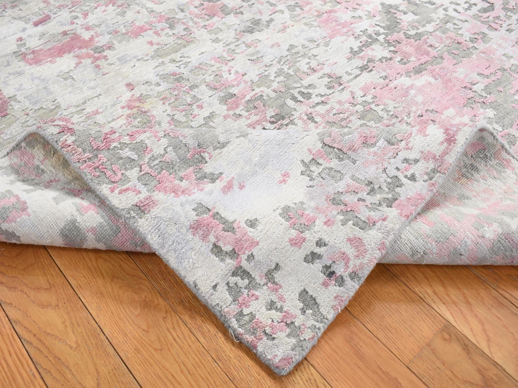 5'10" x 8'9" New Hand Knotted Pink Wool & Silk Rectangle Oriental Rug - MOA10280989