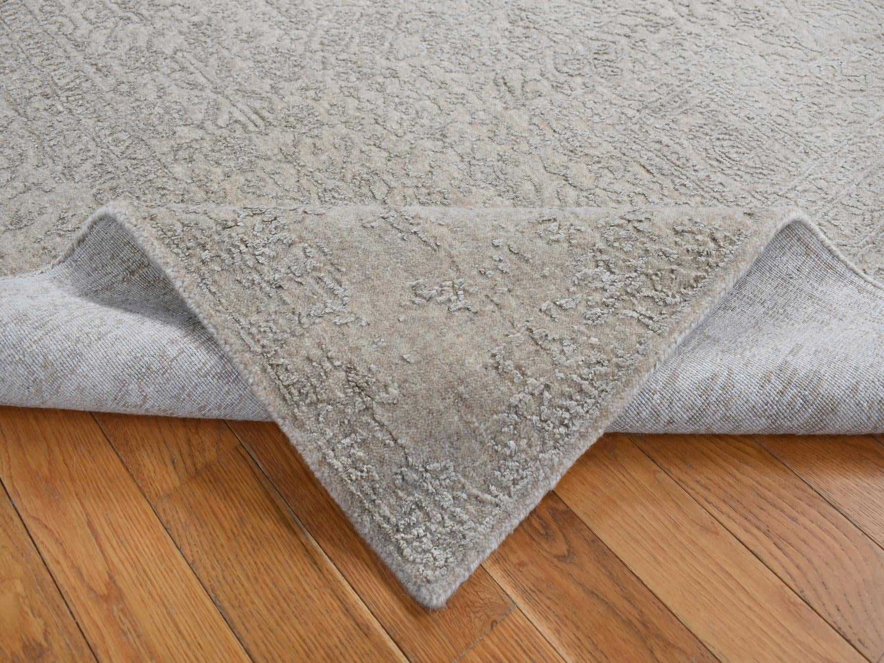 5'9" x 9'0" New Hand Loomed Grey Wool & Art Silk Rectangle Oriental Rug - MOA10280977