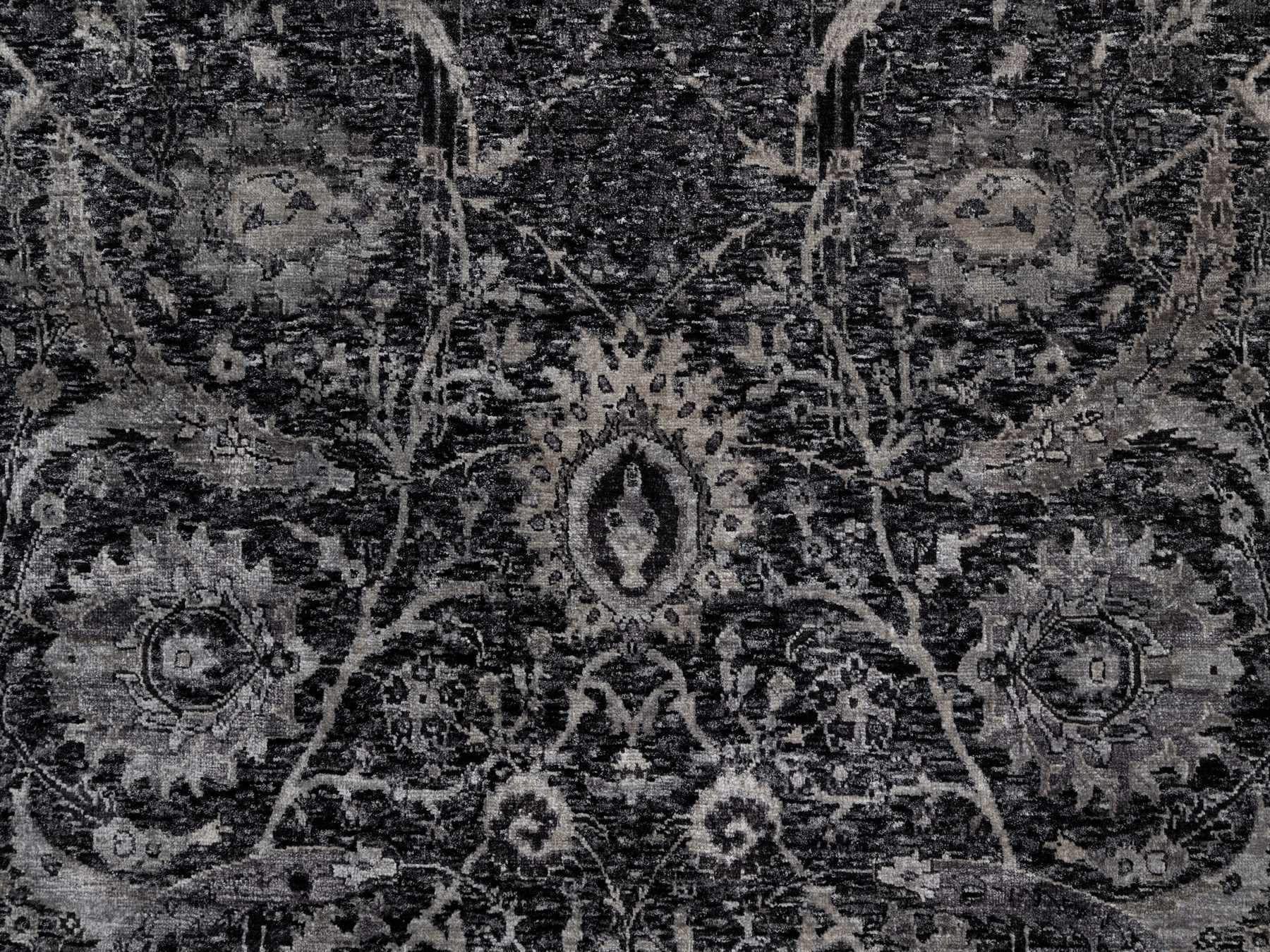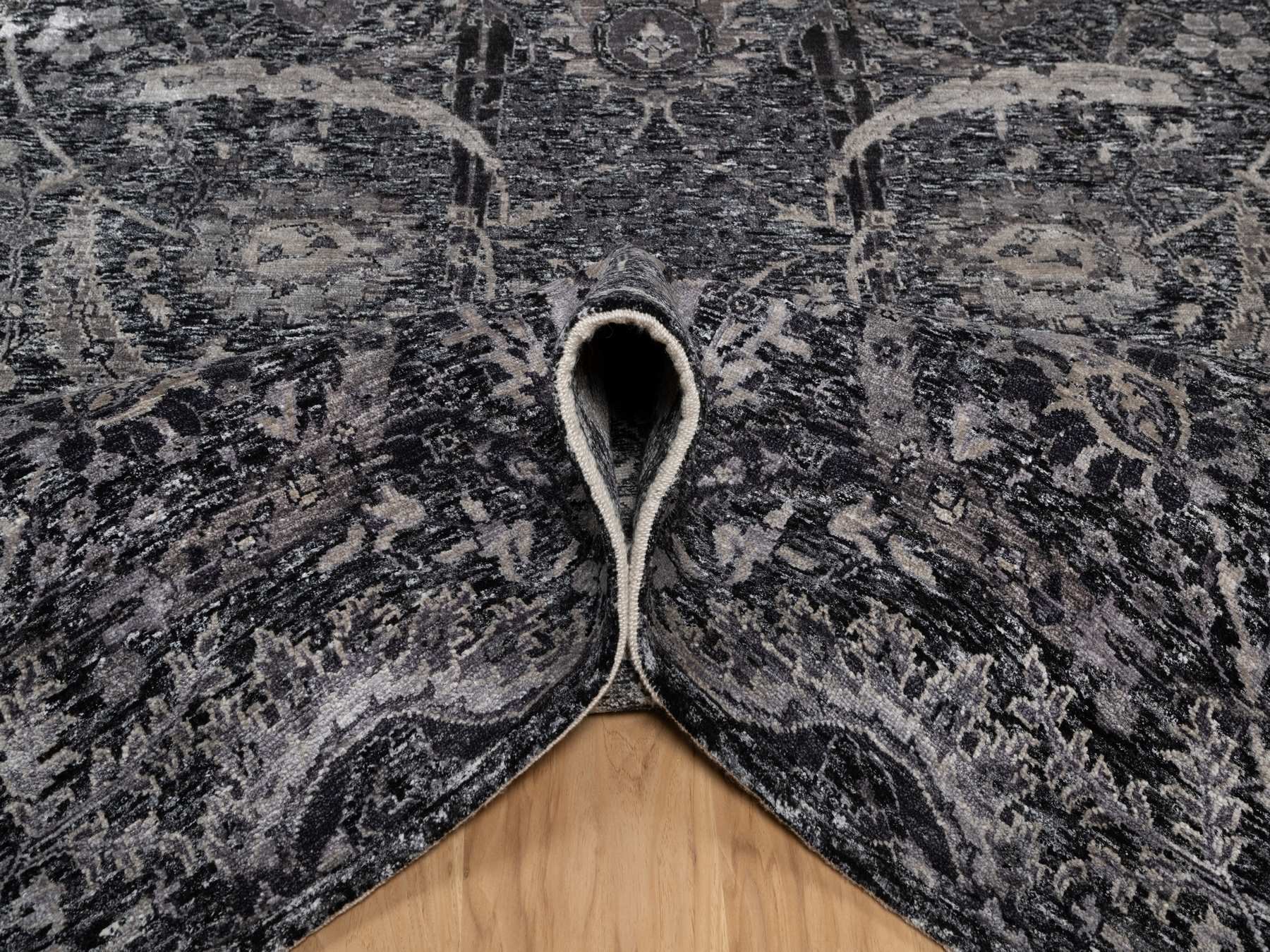 6'0" x 8'10" New Hand Knotted Black Wool & Silk Rectangle Oriental Rug - MOA10291161