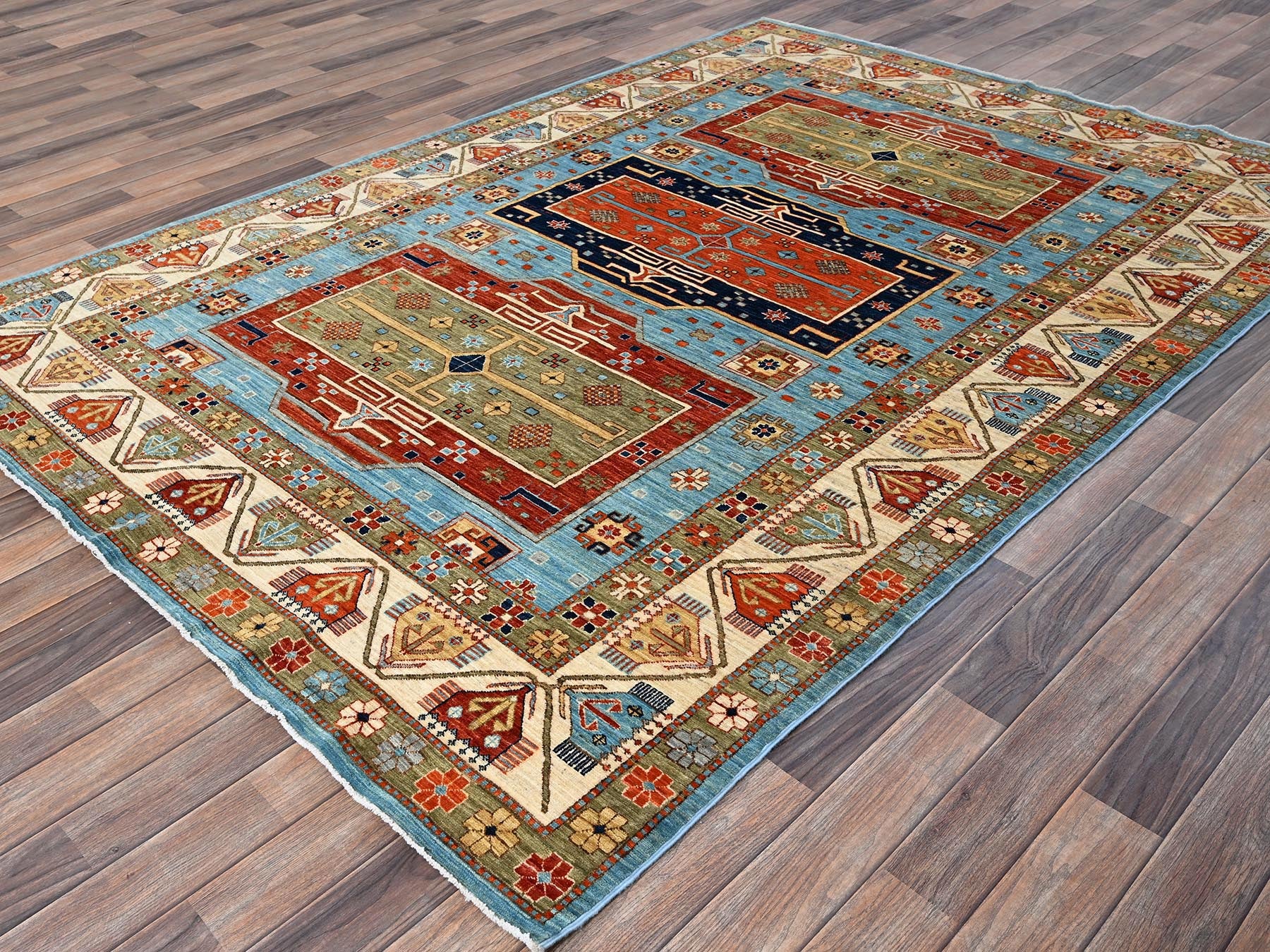 6'0" x 8'6" New Hand Knotted Blue Wool Rectangle Oriental Rug - MOA1021144