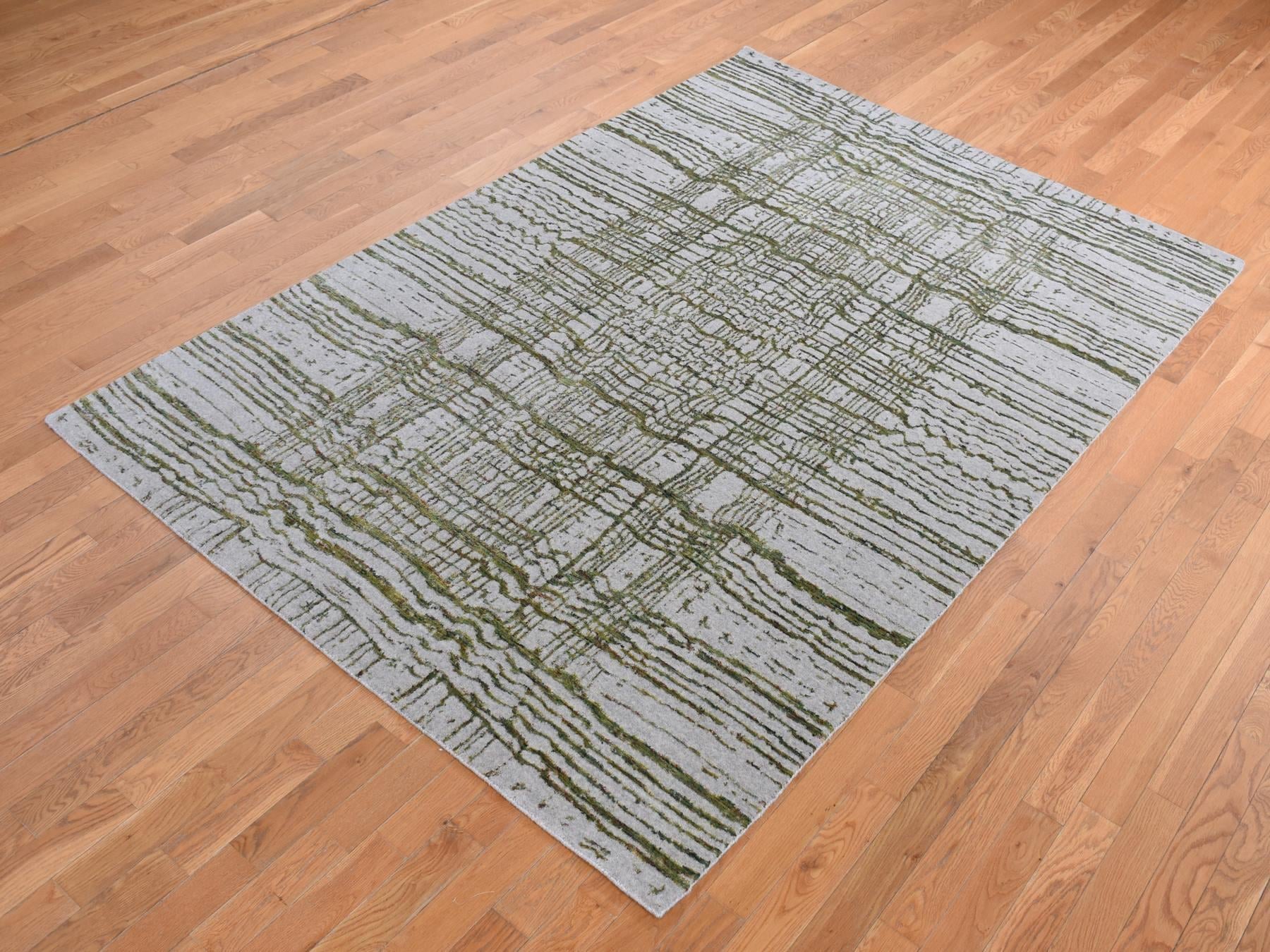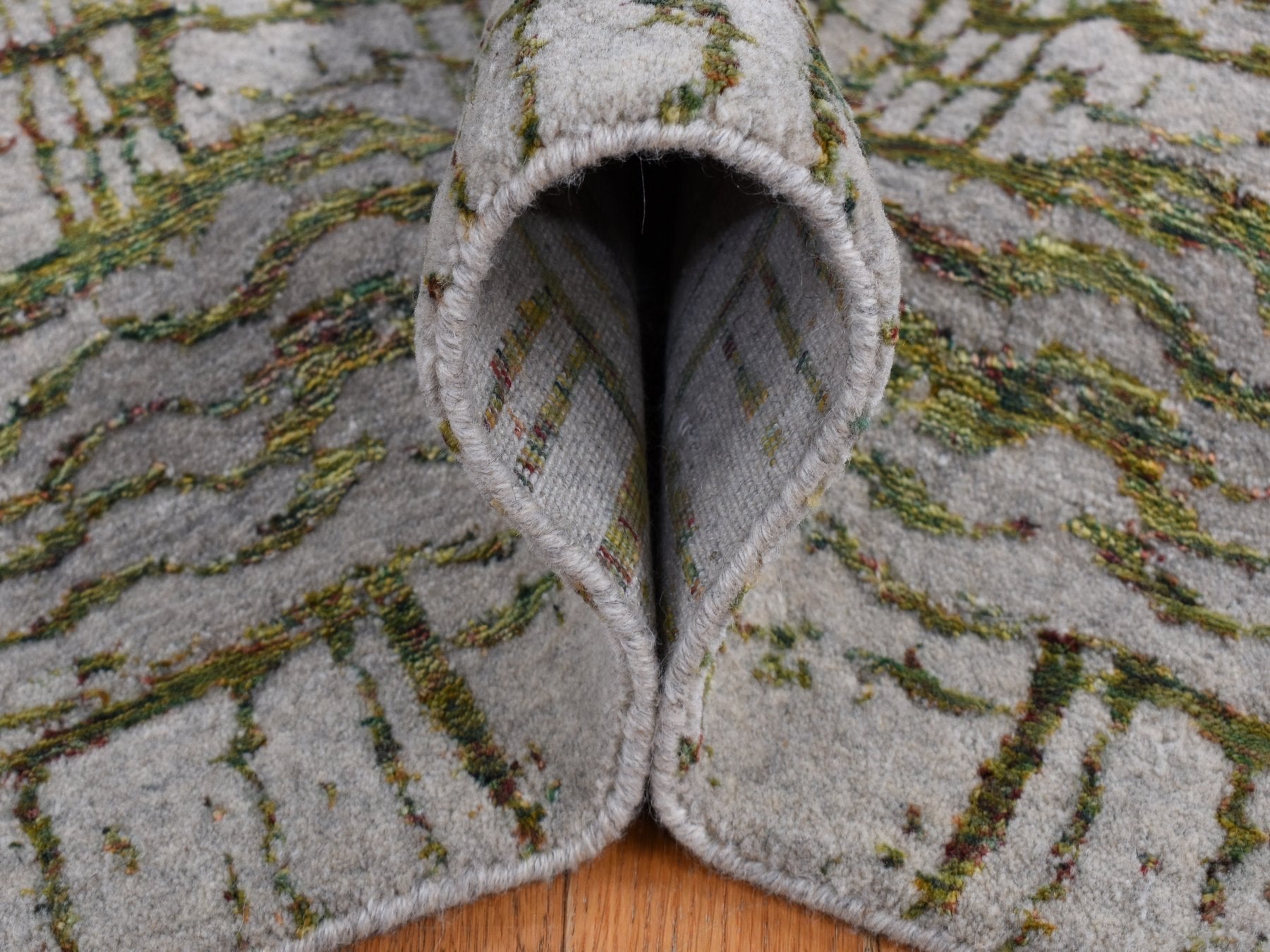 6'0" x 8'9" New Hand Loomed Grey Wool & Silk Rectangle Oriental Rug - MOA10280968