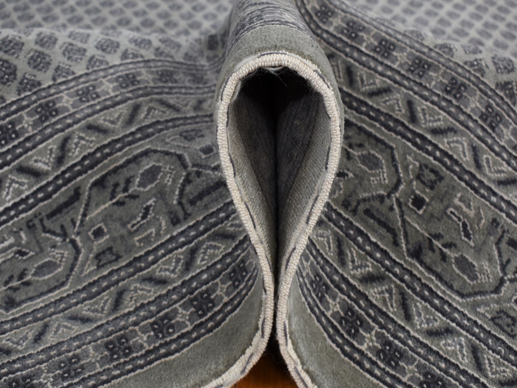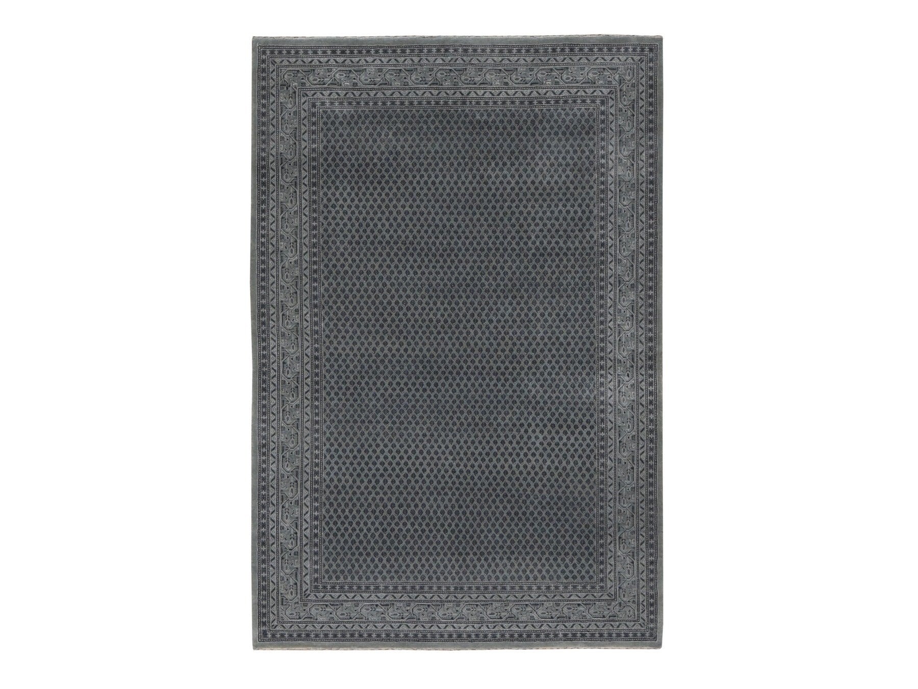 6'0" x 9'0" New Hand Knotted Grey Wool & Silk Rectangle Oriental Rug - MOA10280974