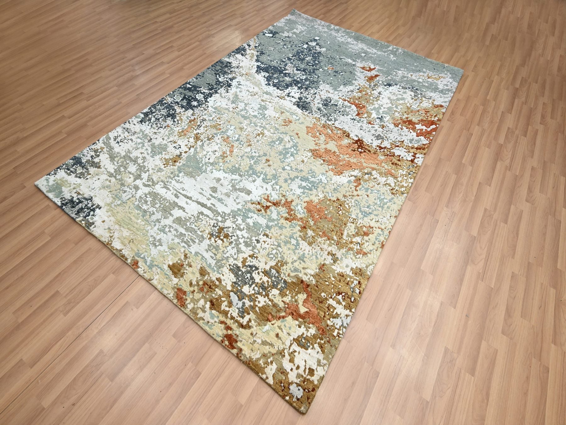 6'0" x 9'3" New Hand Knotted Grey Wool Rectangle Oriental Rug - MOA10283164