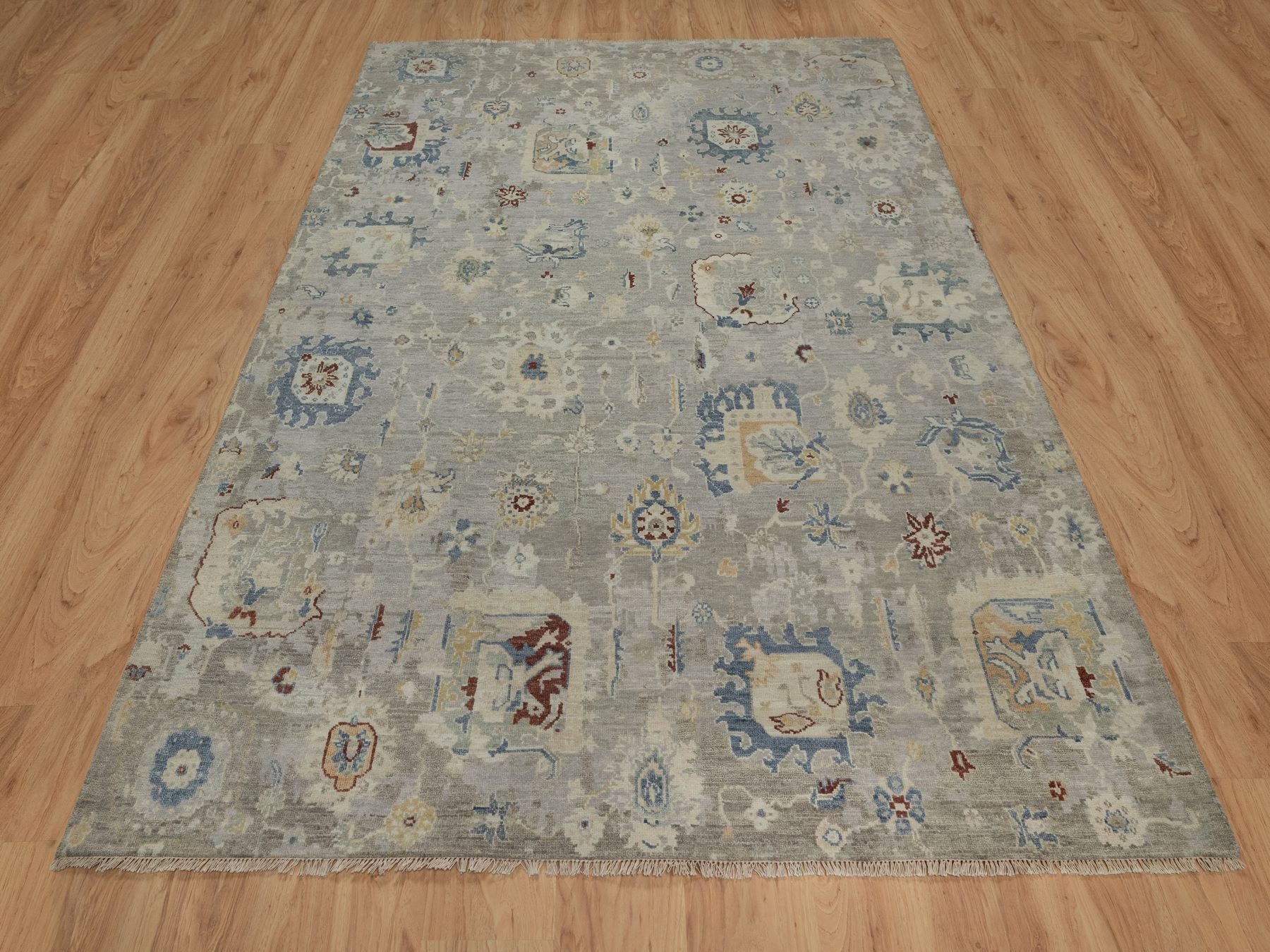 6'1" x 9'0" New Hand Knotted Grey Wool Rectangle Oriental Rug - MOA10291433