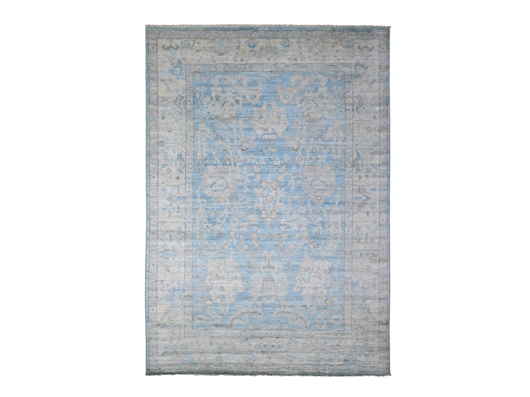 6'2" x 8'10" New Hand Knotted Blue Wool Rectangle Oriental Rug - MOA10289120