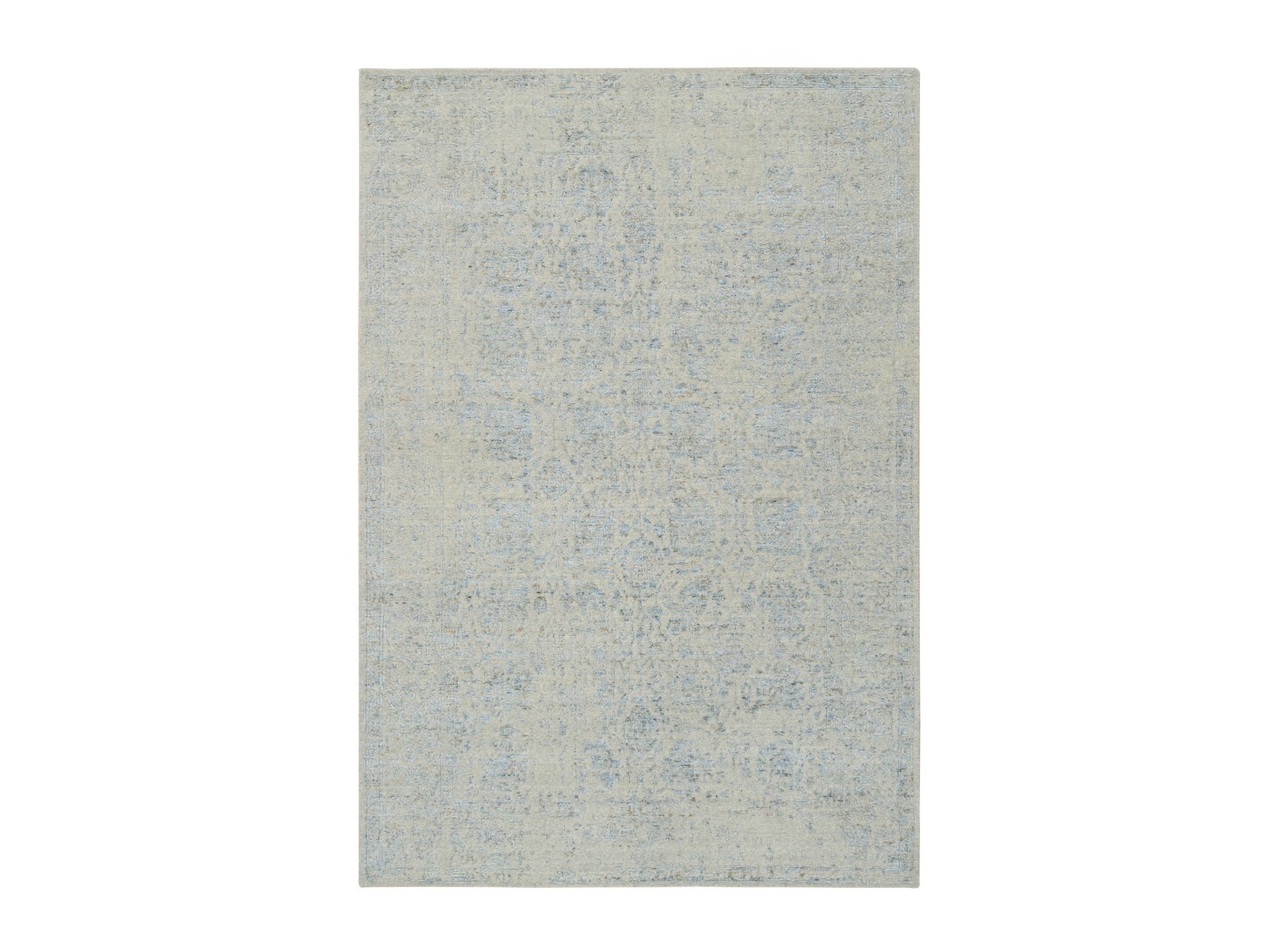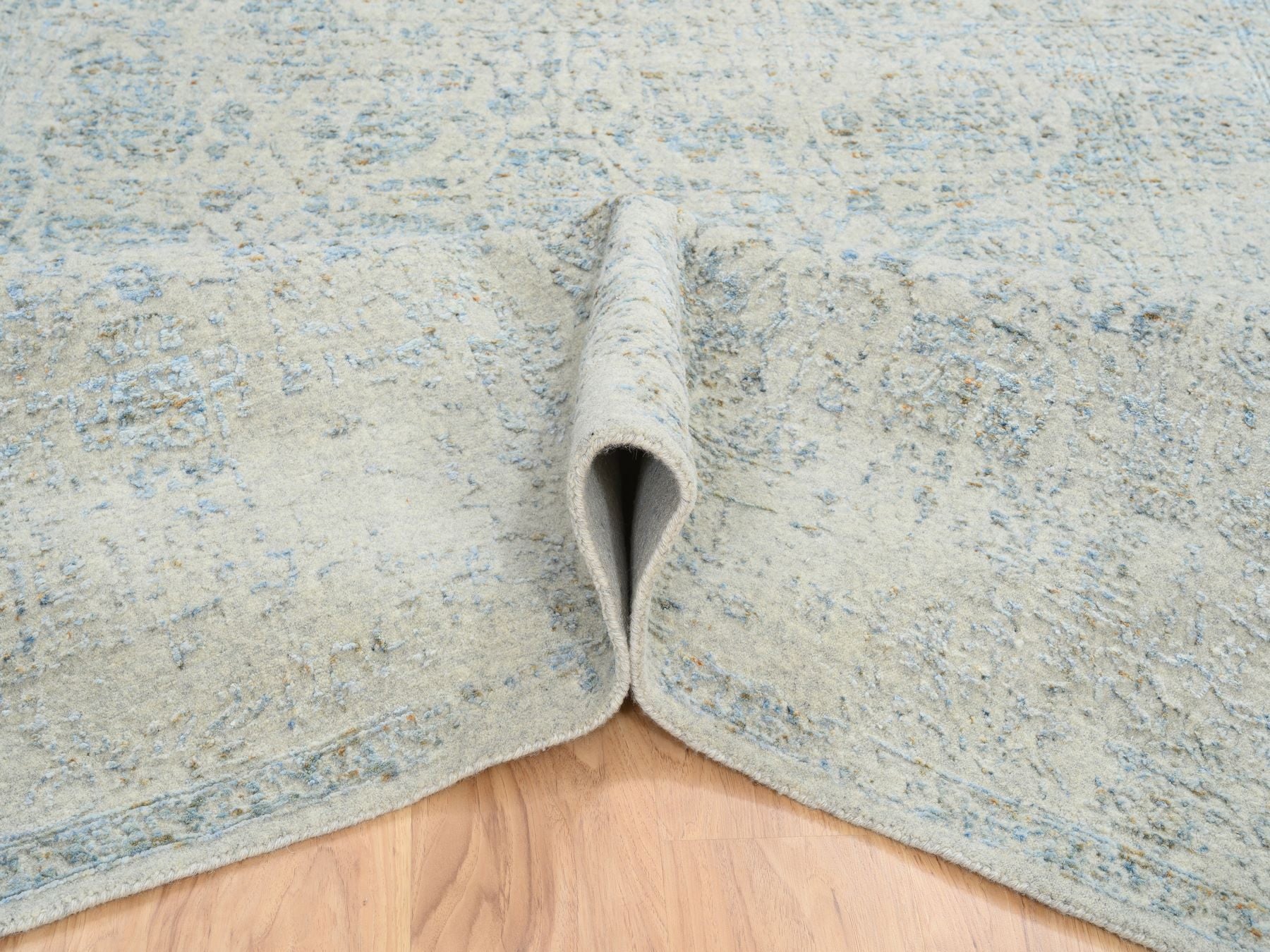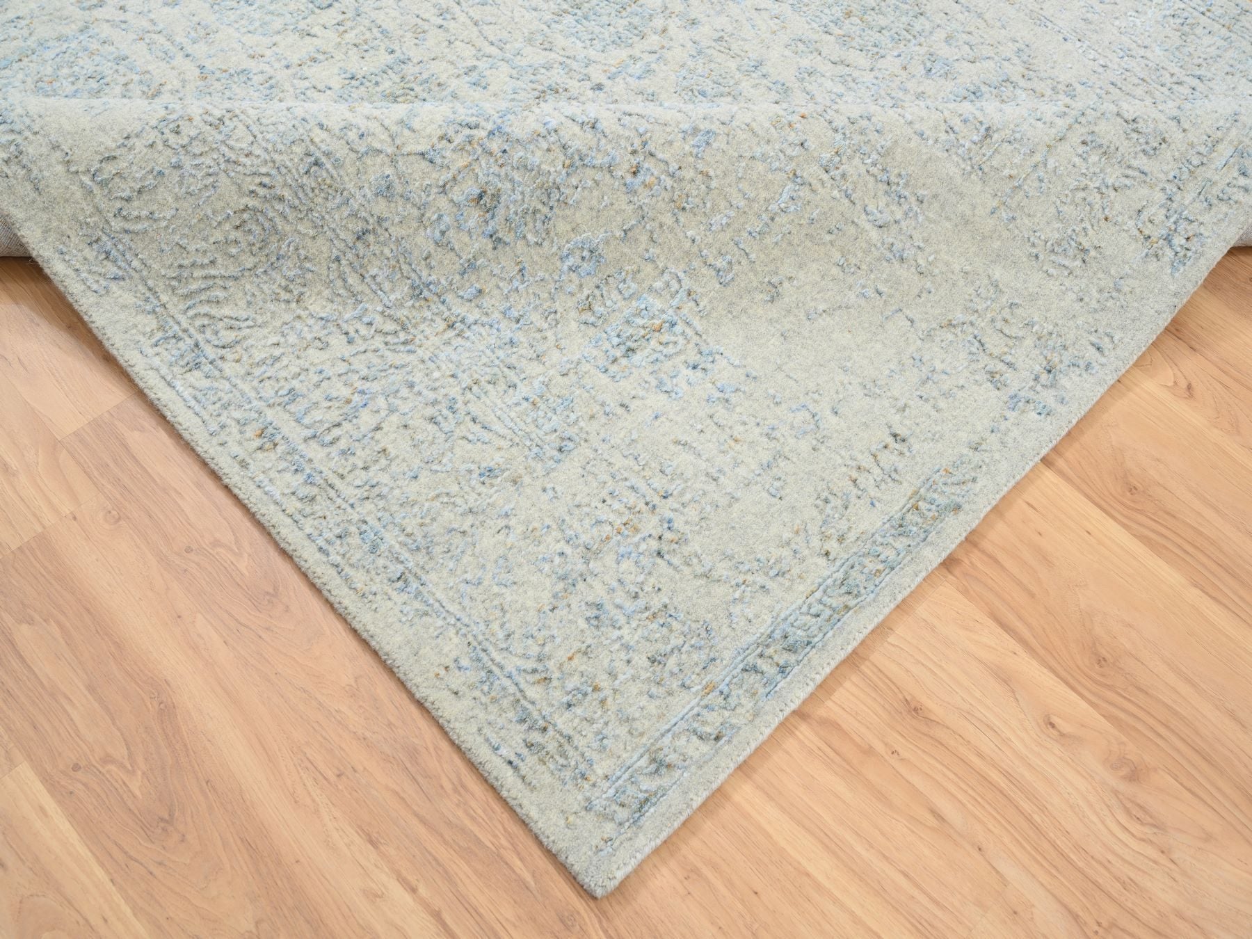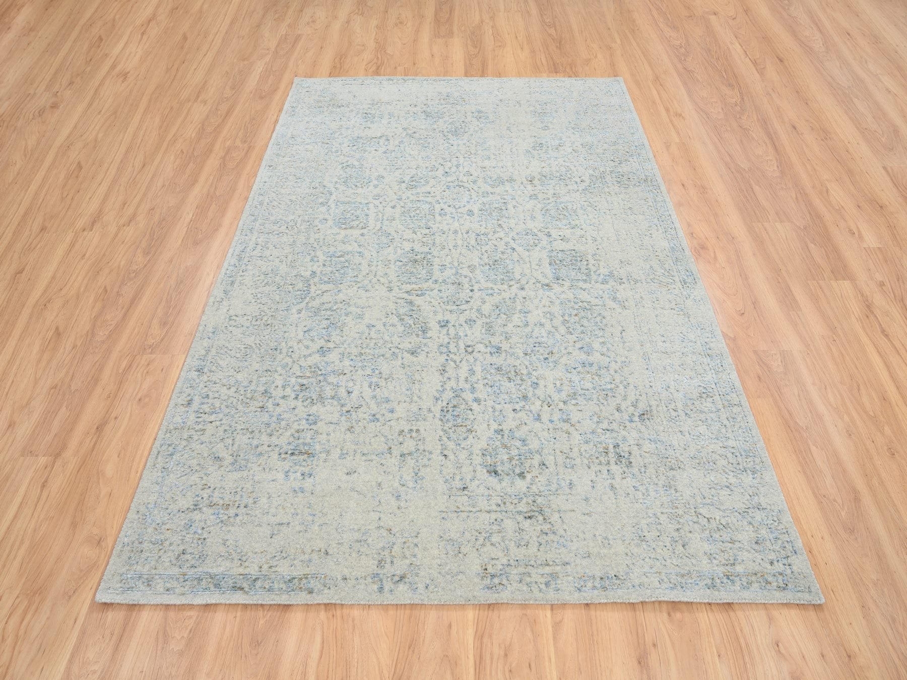 6'2" x 9'0" New Hand Loomed Blue Wool & Silk Rectangle Oriental Rug - MOA10264549