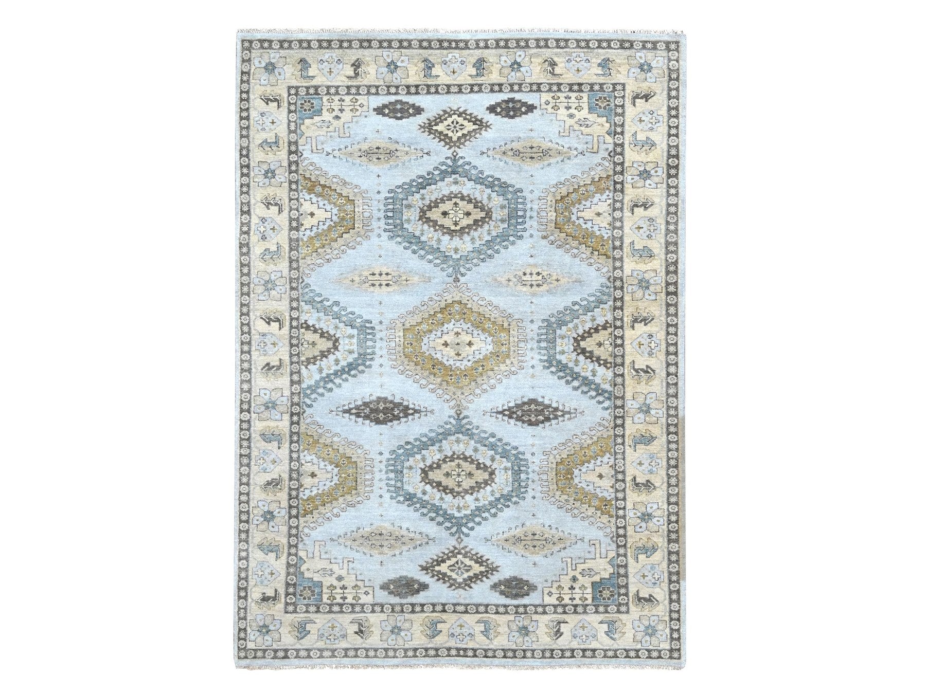 6'2" x 9'1" New Hand Knotted Grey Wool Rectangle Oriental Rug - MOA10210191