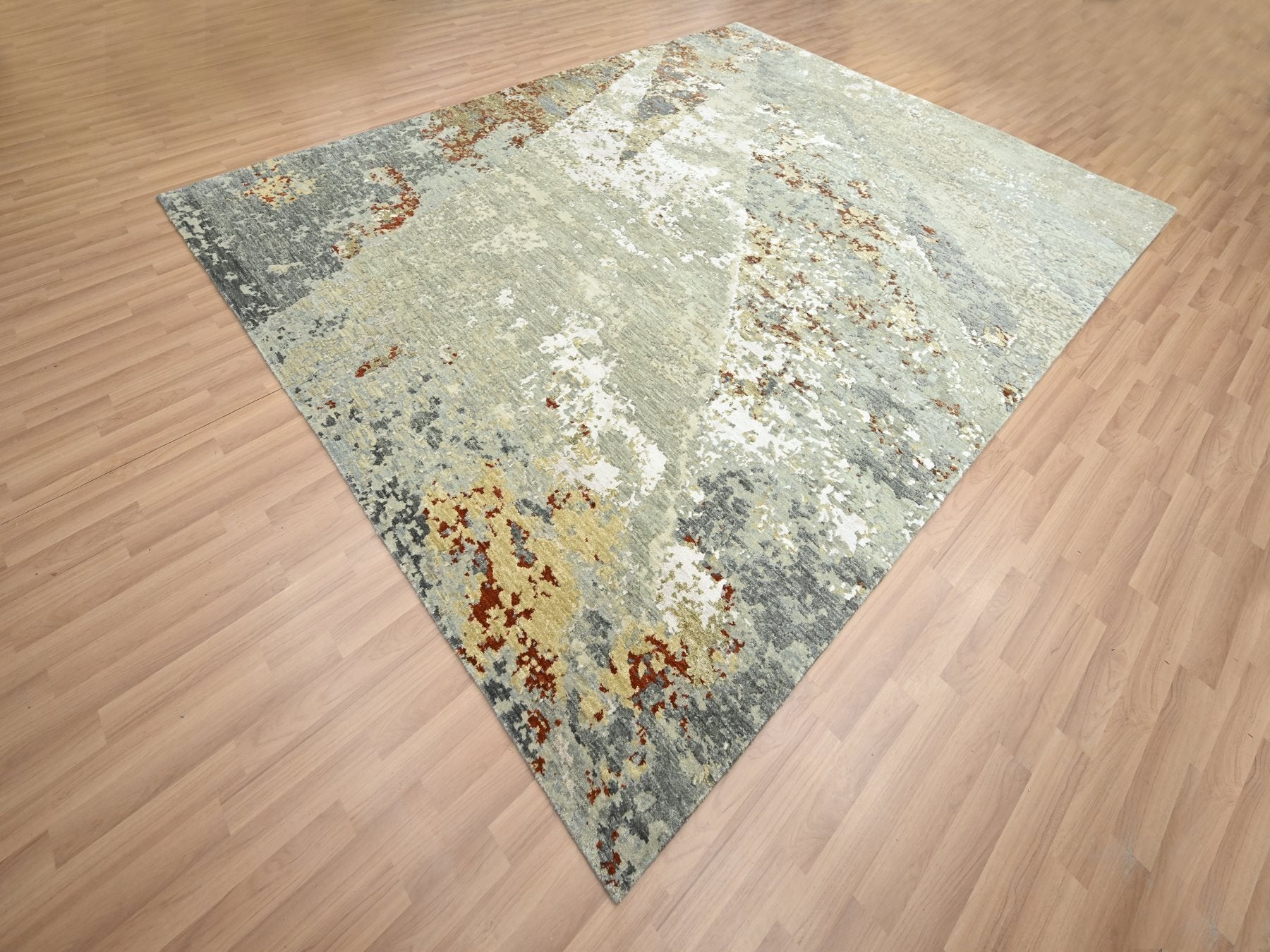 7'10" x 10'1" New Hand Knotted Grey Wool Rectangle Oriental Rug - MOA10283128