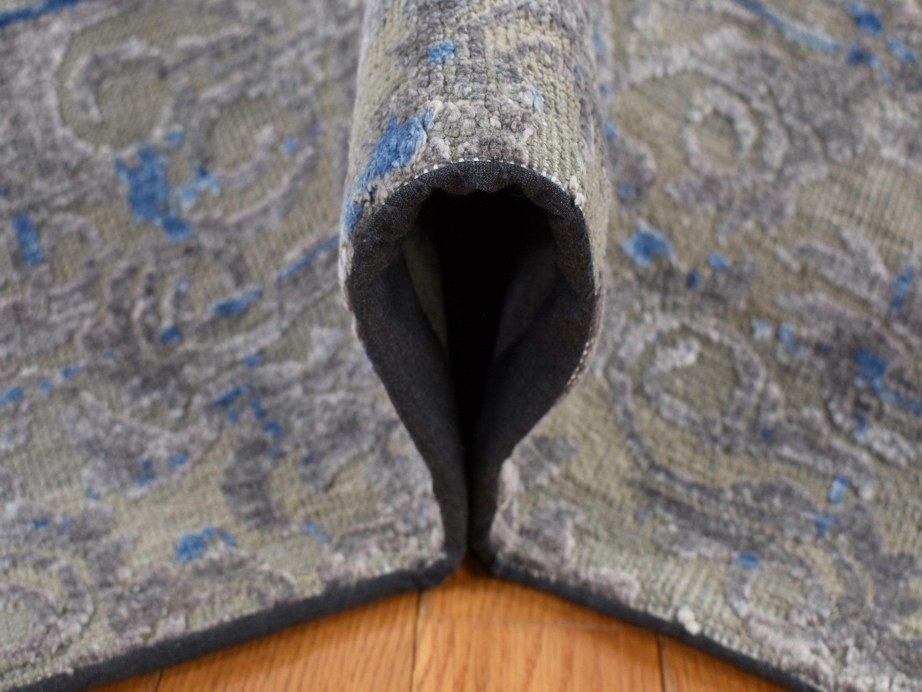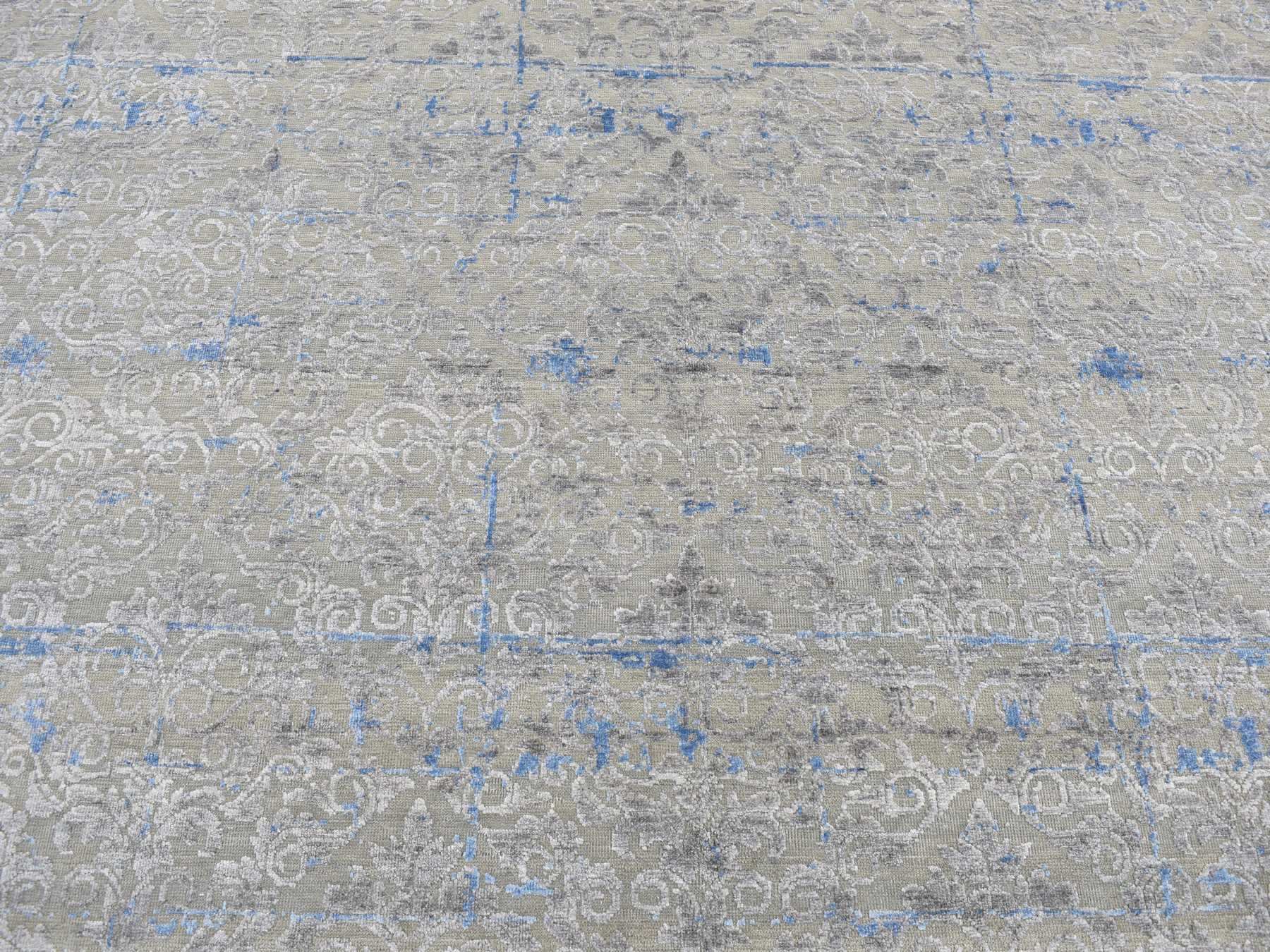 7'10" x 10'2" New Hand Knotted Grey Wool & Silk Rectangle Oriental Rug - MOA10287060