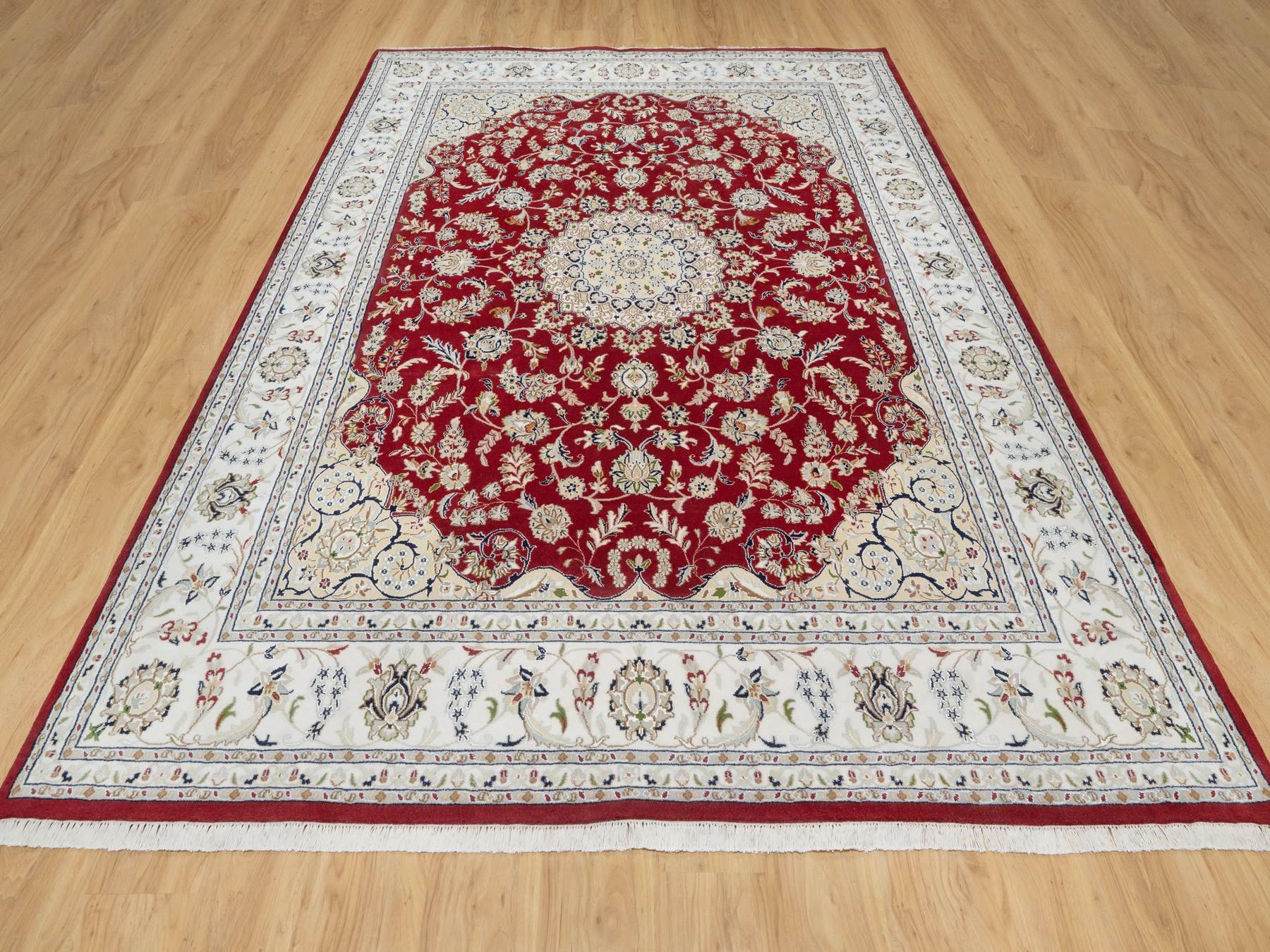 7'10" x 10'3" New Hand Knotted Red Wool & Silk Rectangle Oriental Rug - MOA10290854