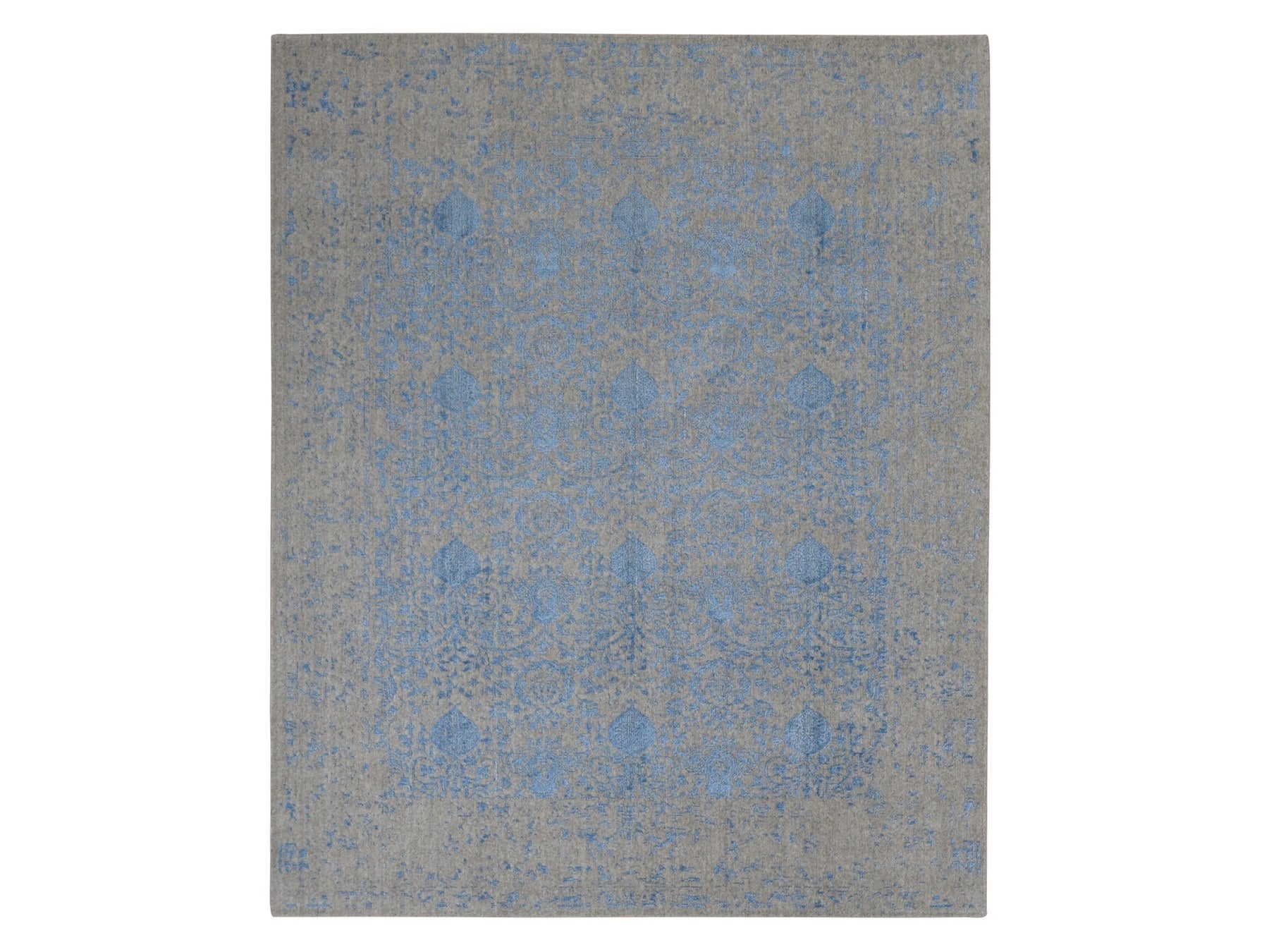 7'10" x 9'9" New Hand Loomed Blue Wool Rectangle Oriental Rug - MOA10287058