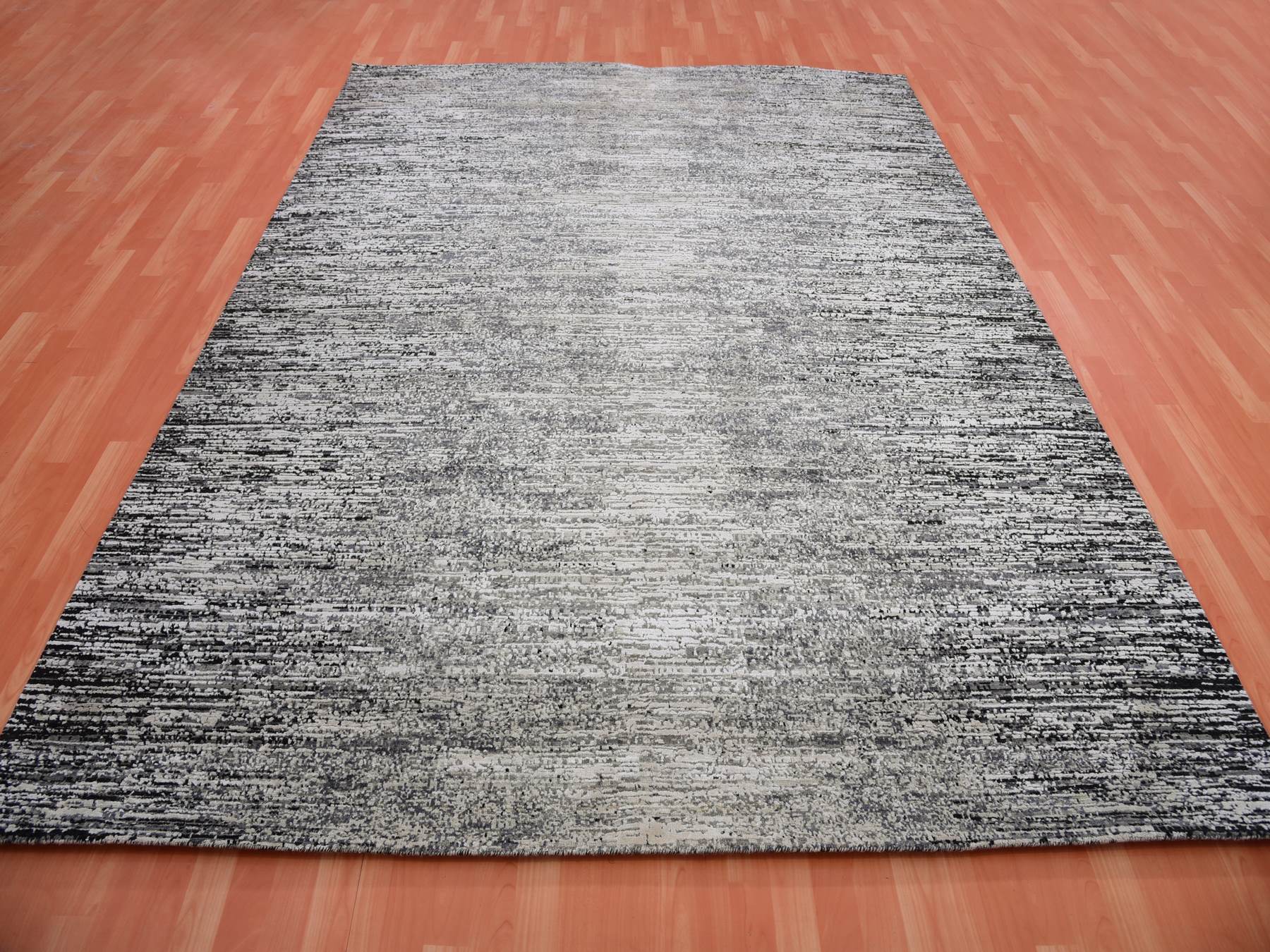 7'11" x 10'3" New Hand Knotted Black Wool & Silk Rectangle Oriental Rug - MOA10275344
