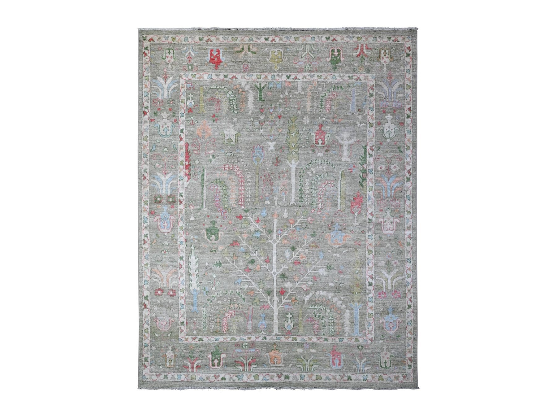 7'8" x 9'10" New Hand Knotted Green Wool Rectangle Oriental Rug - MOA10289155