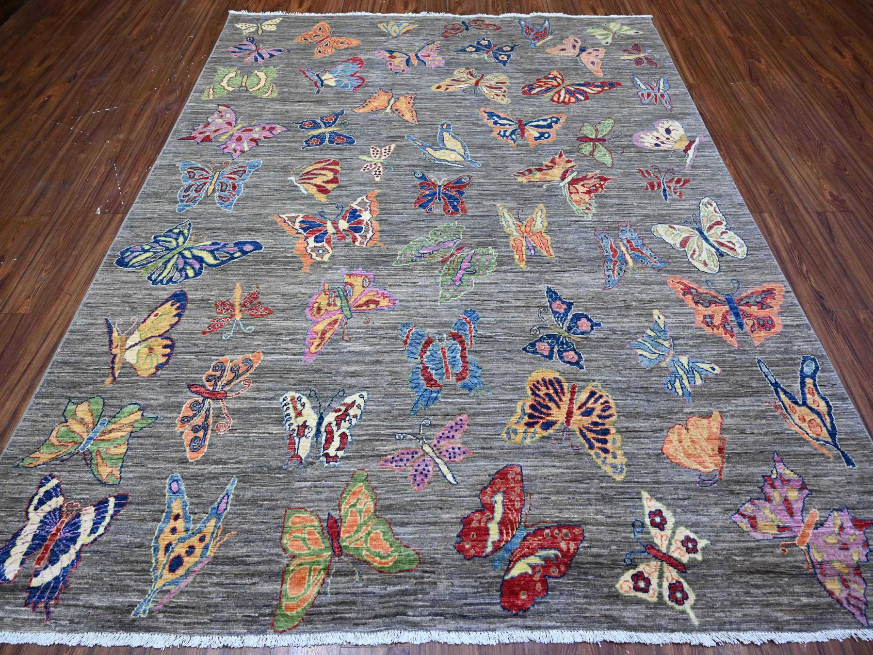 7'8" x 9'7" New Hand Knotted Grey Wool Rectangle Oriental Rug - MOA10288278
