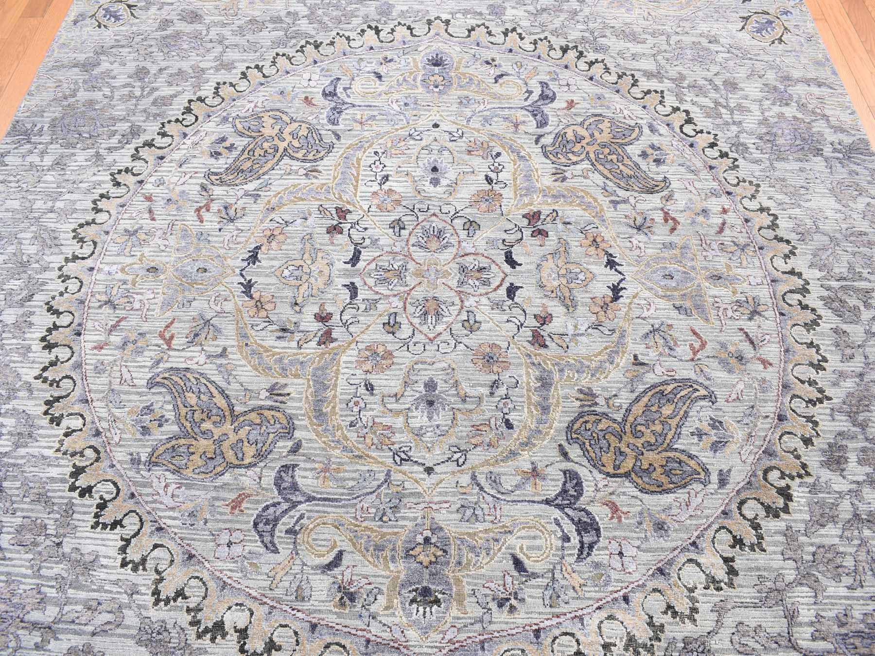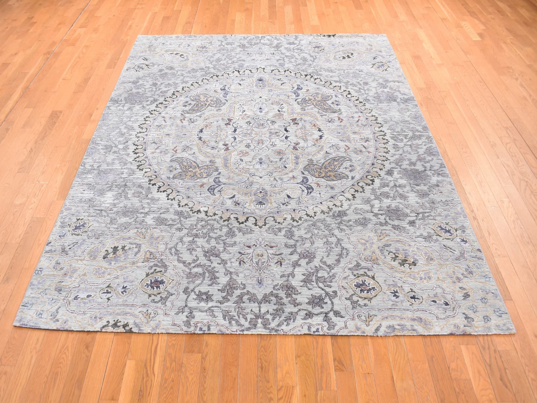 7'9" x 10'1" New Hand Knotted Grey Wool & Pure Silk Rectangle Oriental Rug - MOA10280742