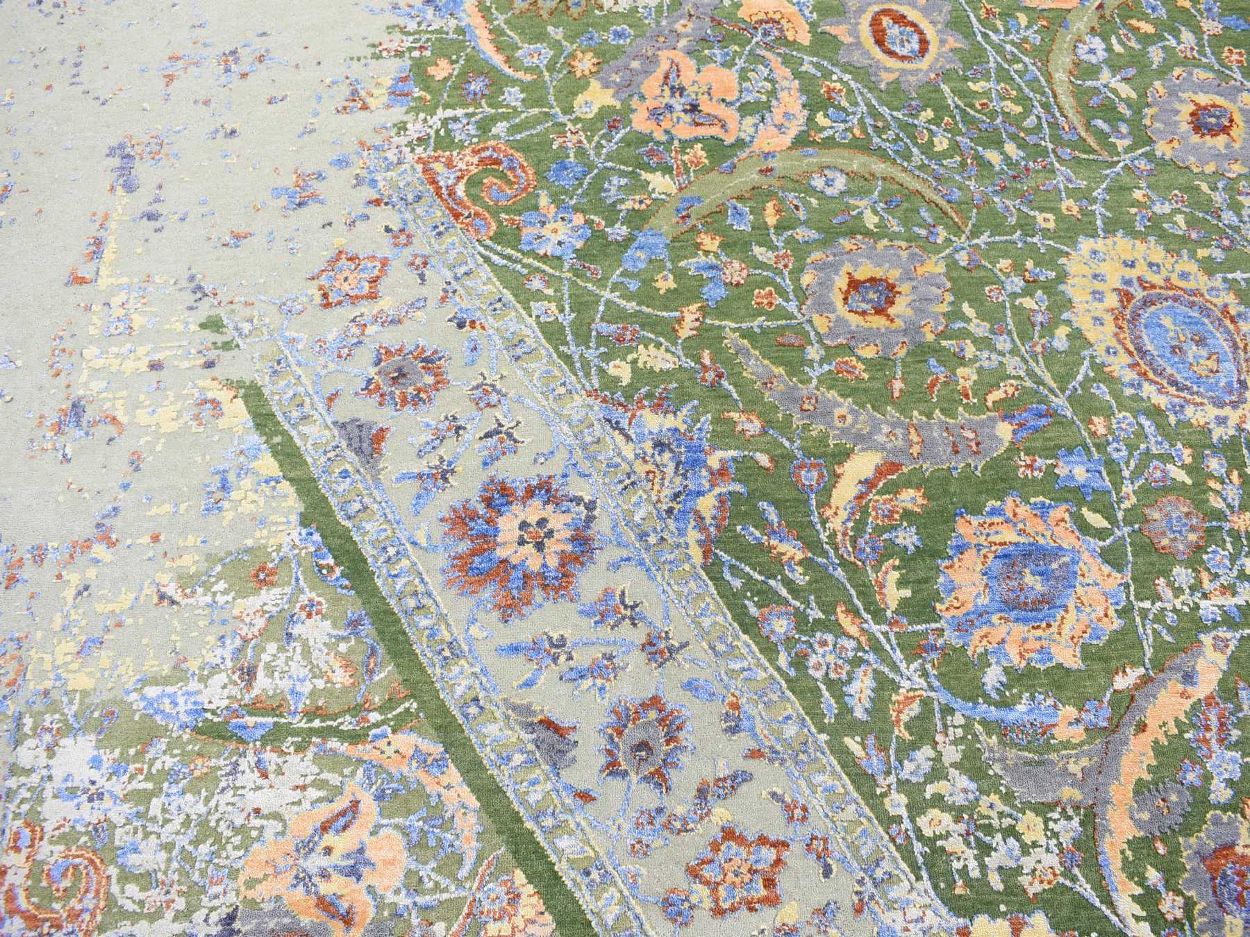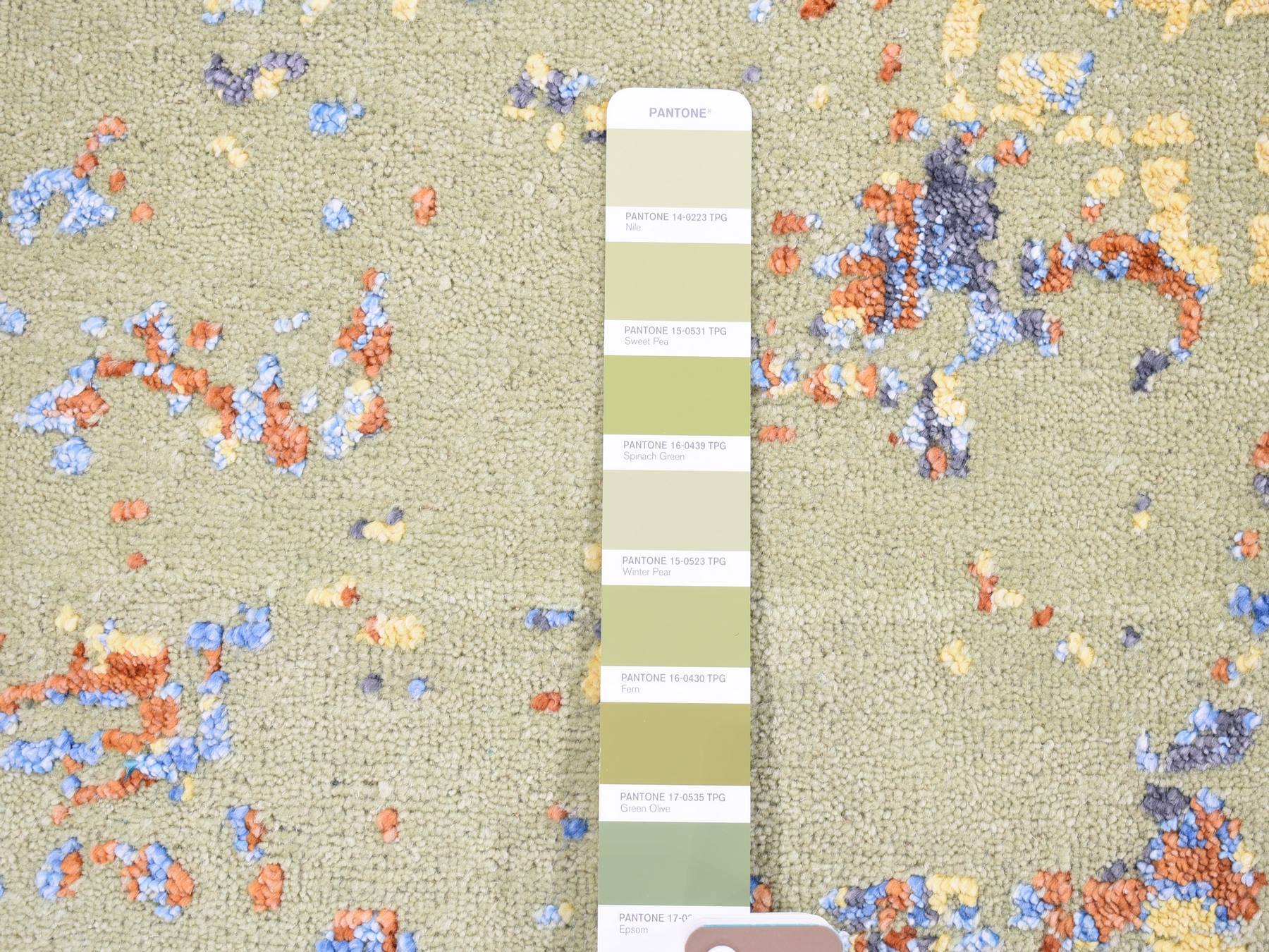 7'9" x 9'10" New Hand Knotted Green Wool & Silk Rectangle Oriental Rug - MOA10280388