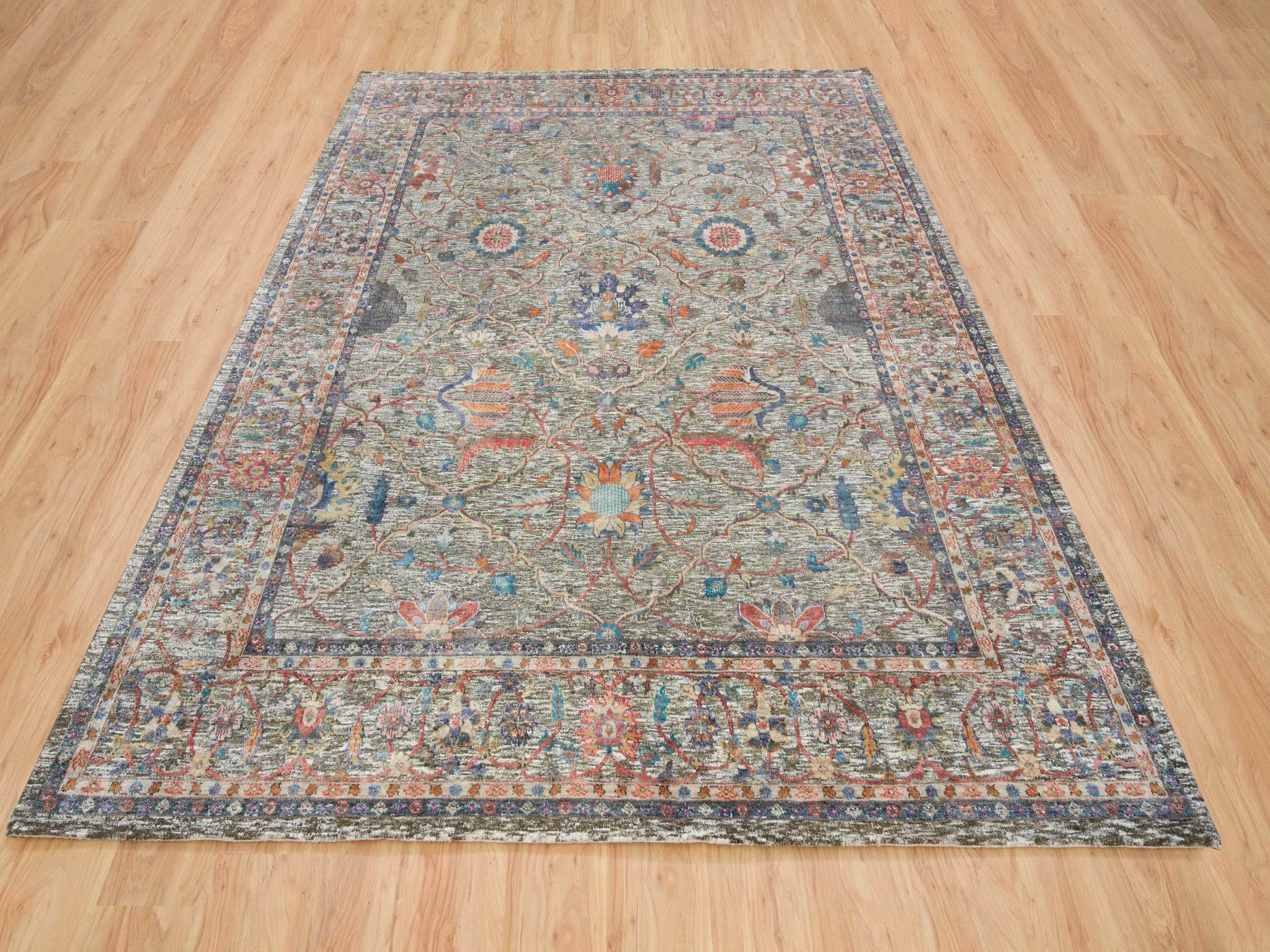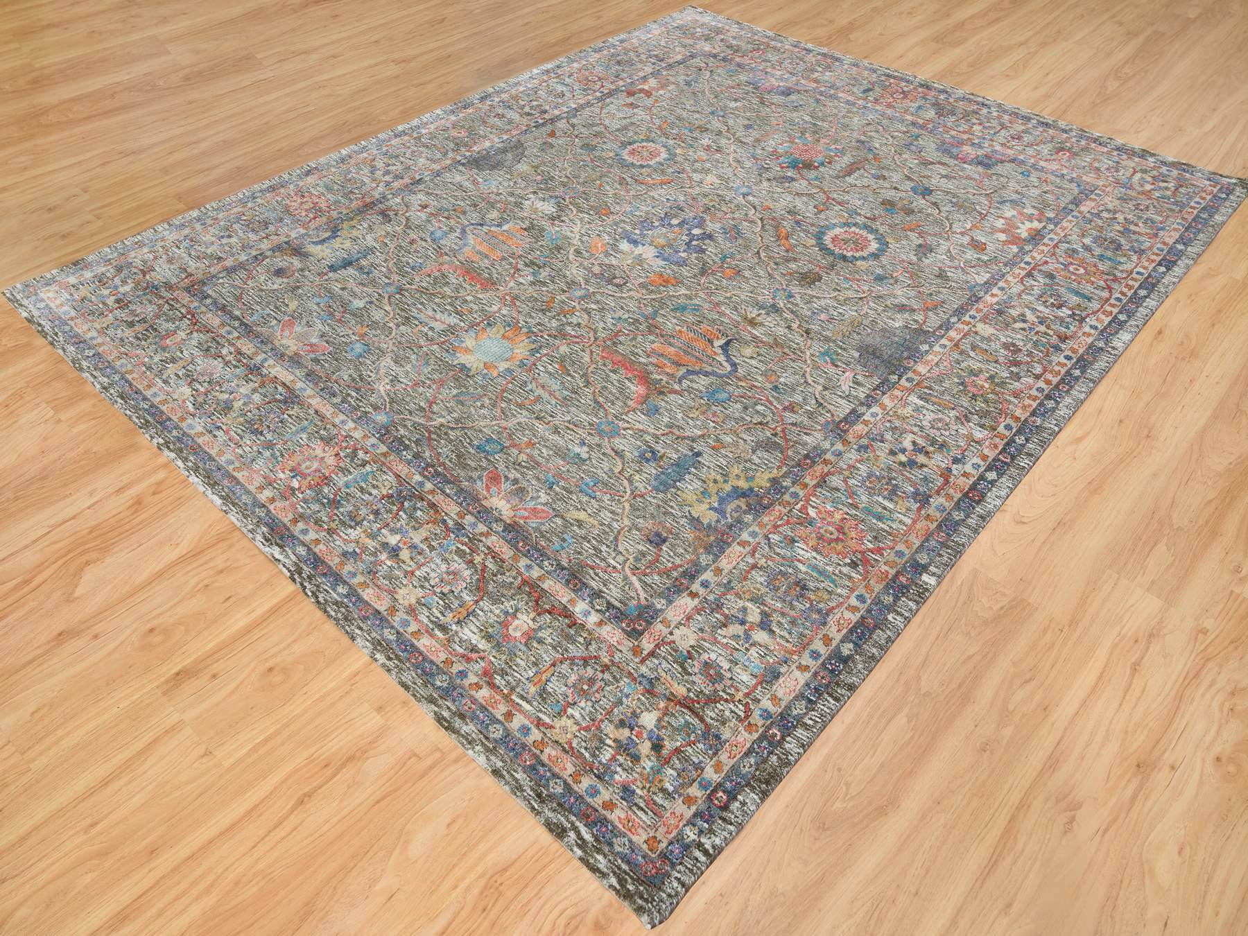 8'0" x 10'1" New Hand Knotted Brown Wool & Silk Rectangle Oriental Rug - MOA10265546