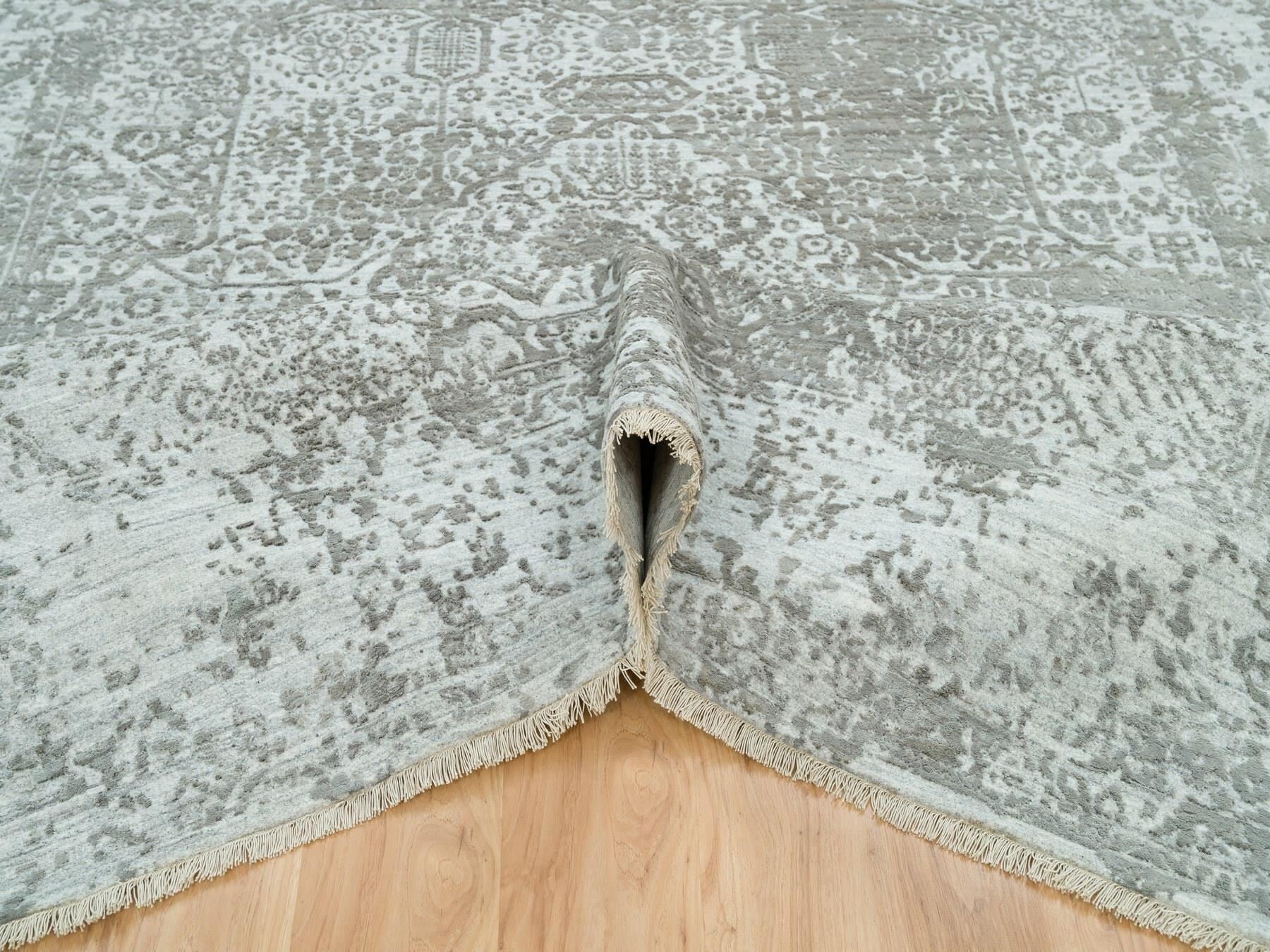 8'0" x 10'2" New Hand Knotted Grey Wool & Silk Rectangle Oriental Rug - MOA10265872