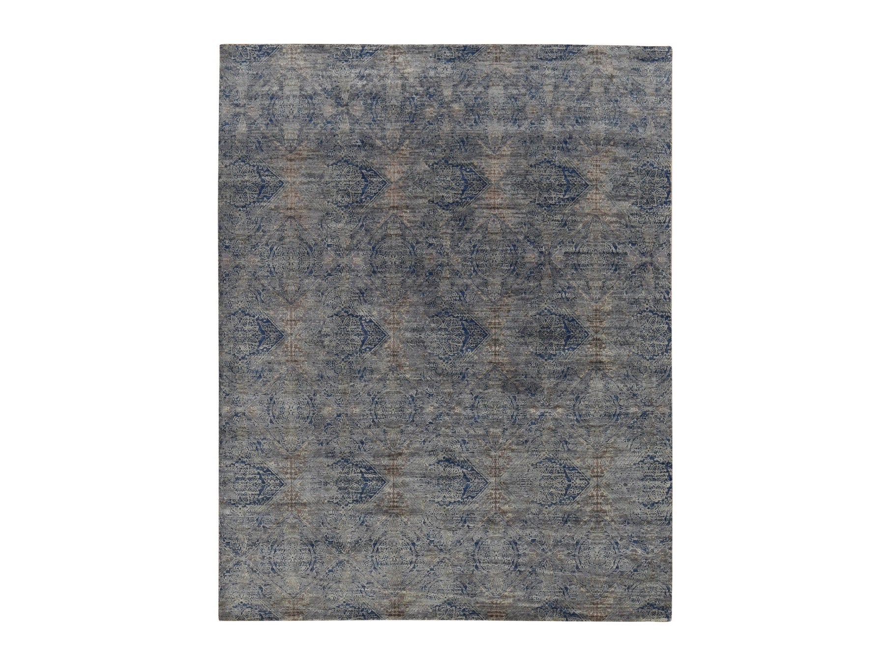8'0" x 10'2" New Hand Knotted Grey Wool & Silk Rectangle Oriental Rug - MOA10287033