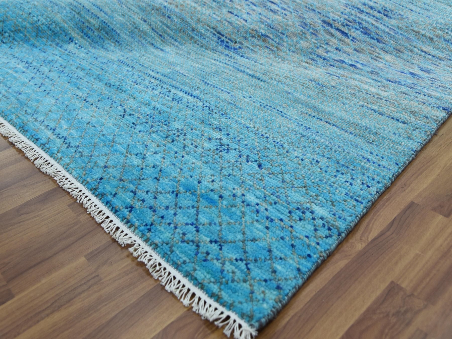 8'0" x 9'10" New Hand Knotted Blue Wool Rectangle Oriental Rug - MOA10279202