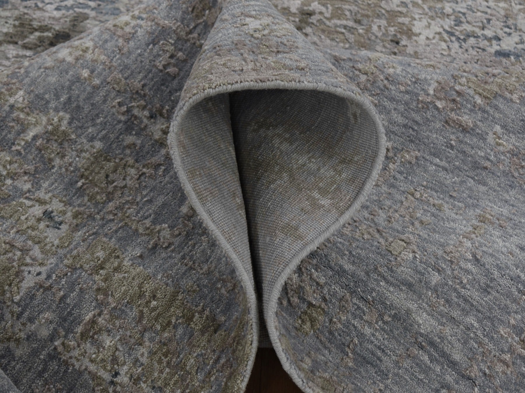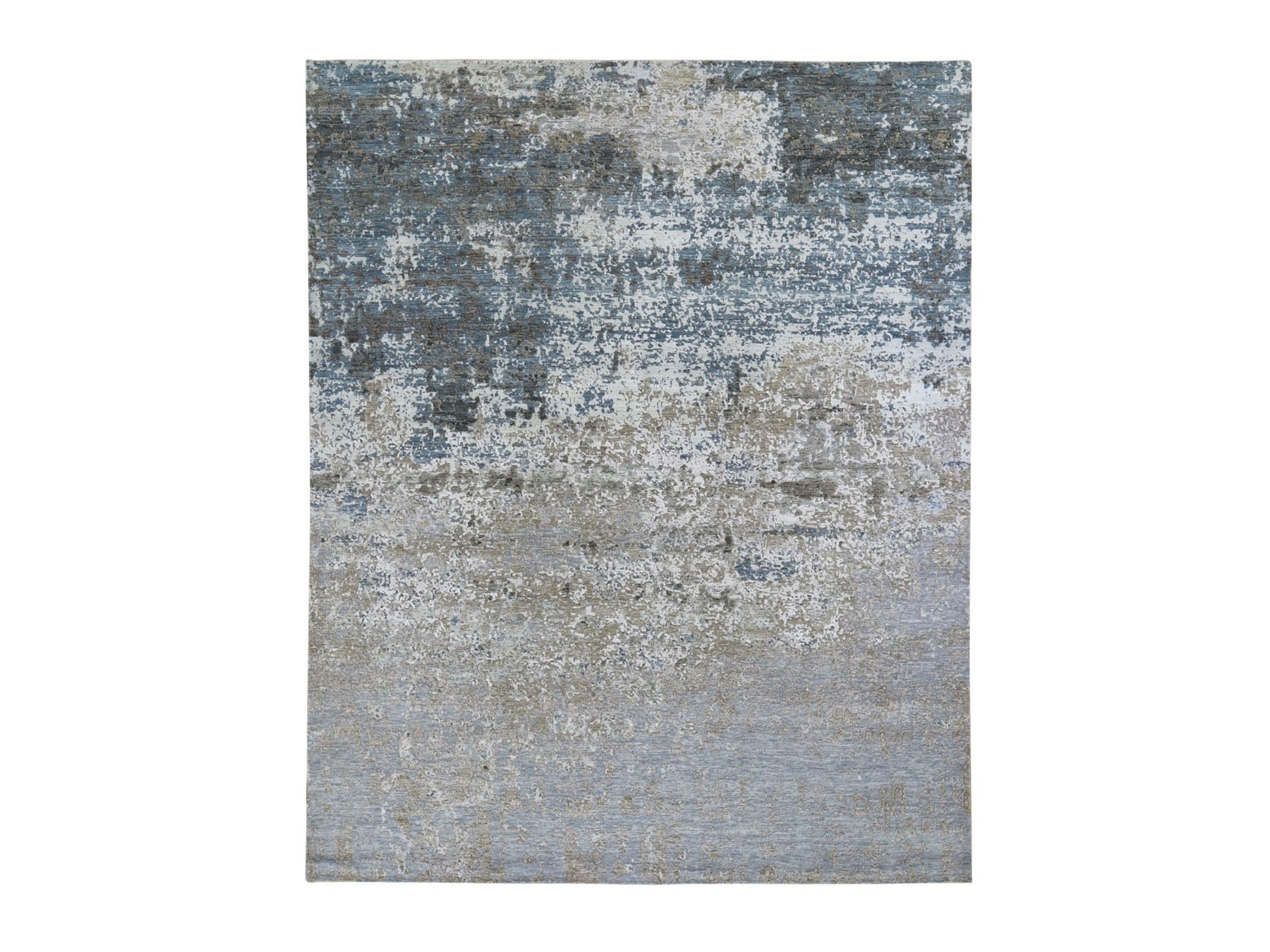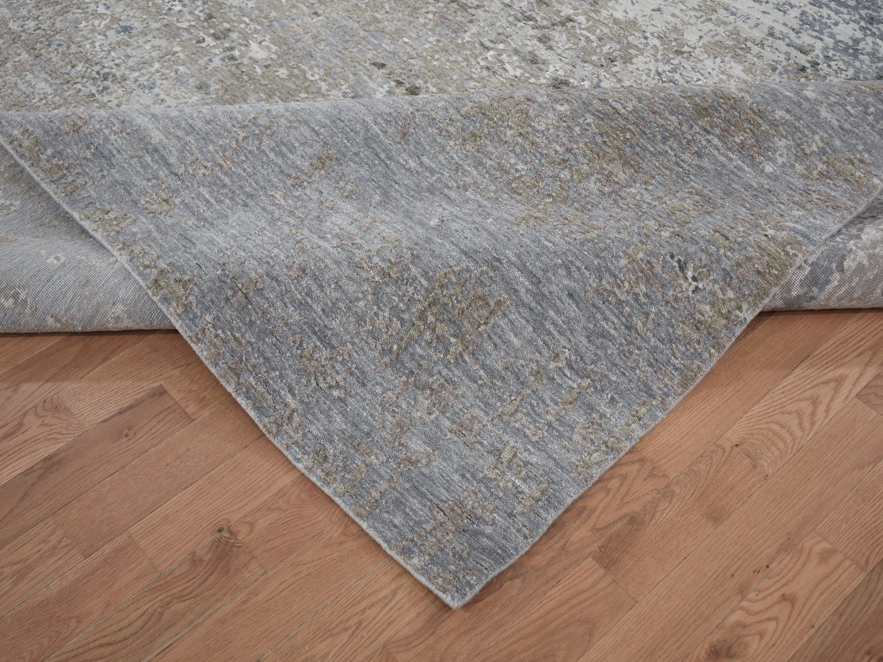8'0" x 9'10" New Hand Knotted Grey Wool & Silk Rectangle Oriental Rug - MOA10259042