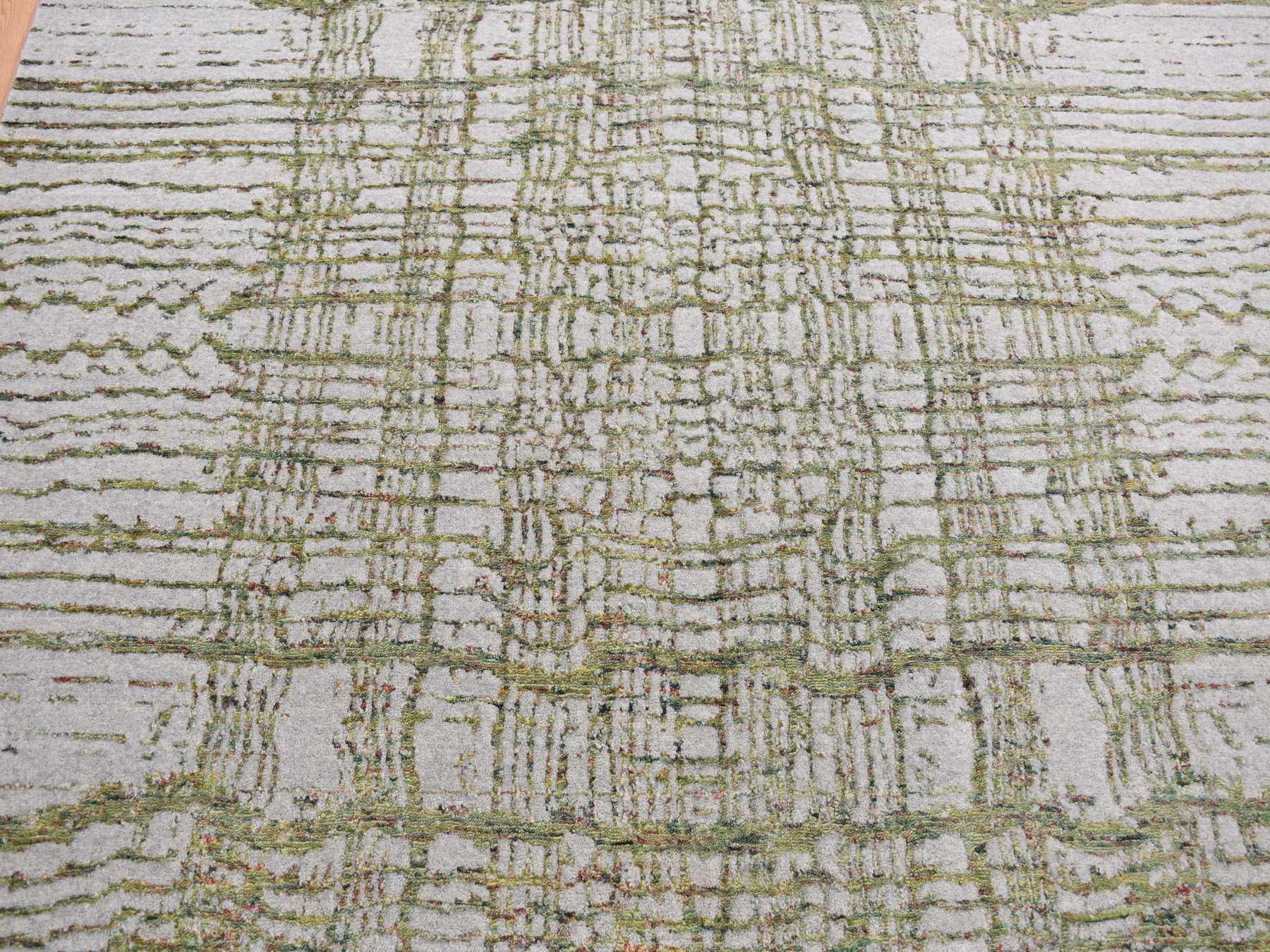 8'0" x 9'10" New Hand Loomed Grey Wool & Silk Rectangle Oriental Rug - MOA10287021