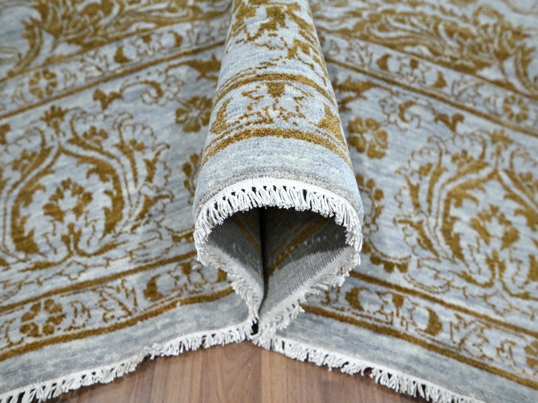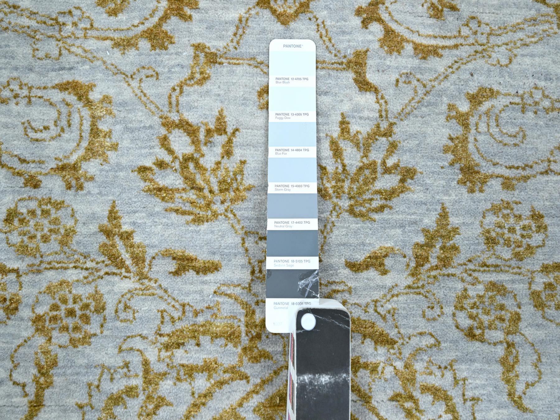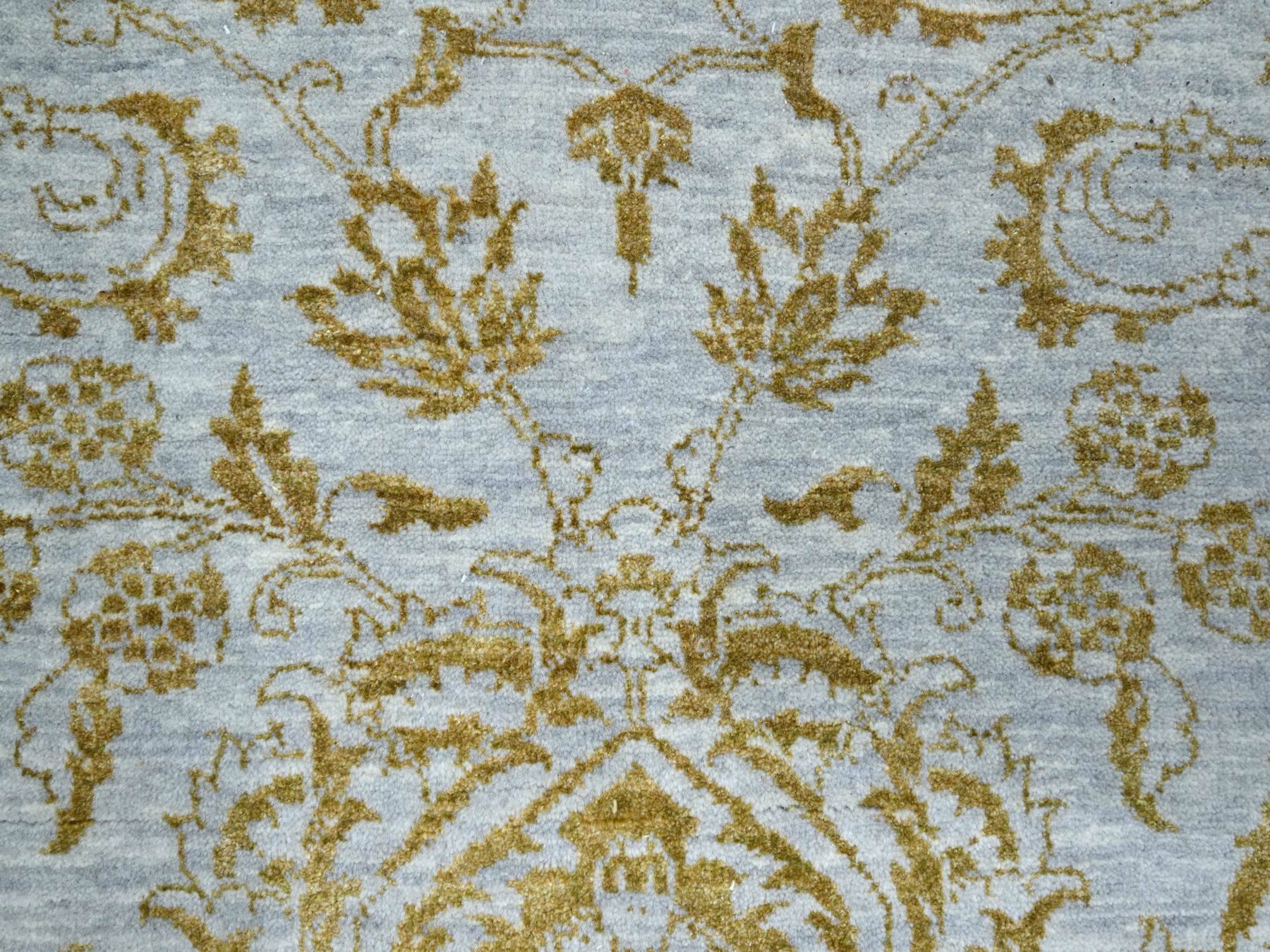 8'0" x 9'11" New Hand Knotted Blue Wool & Silk Rectangle Oriental Rug - MOA10276308