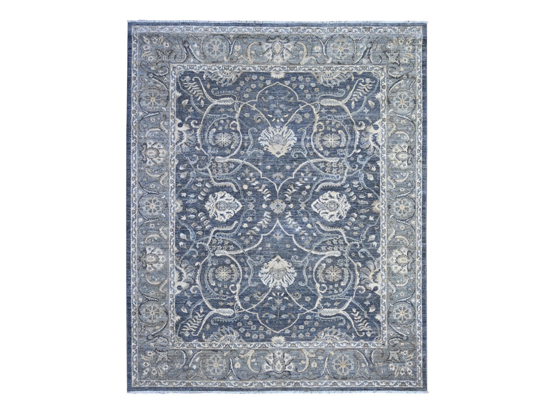 8'0" x 9'9" New Hand Knotted Grey Wool Rectangle Oriental Rug - MOA10289489
