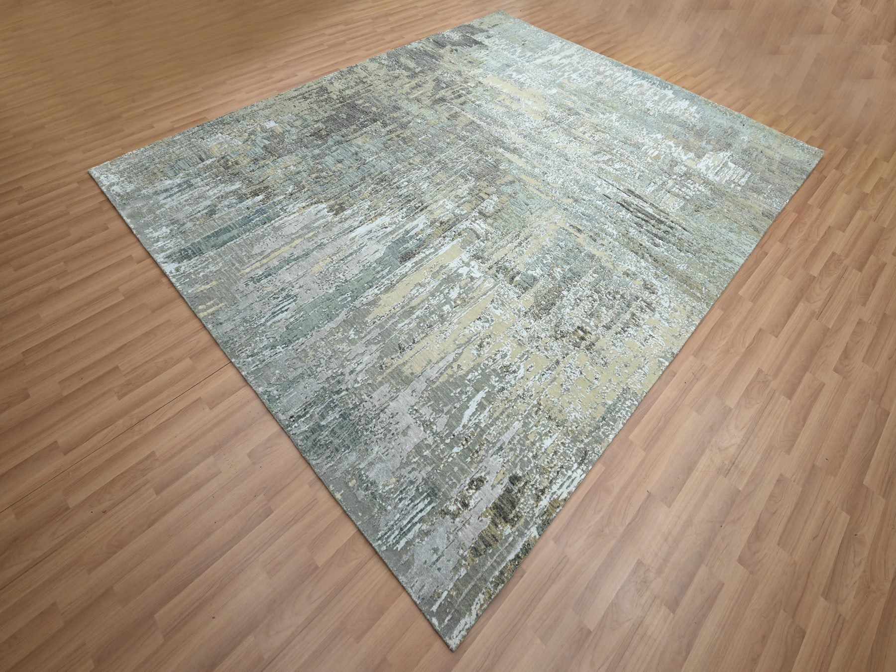 8'1" x 10'0" New Hand Knotted Grey Wool Rectangle Oriental Rug - MOA10283137