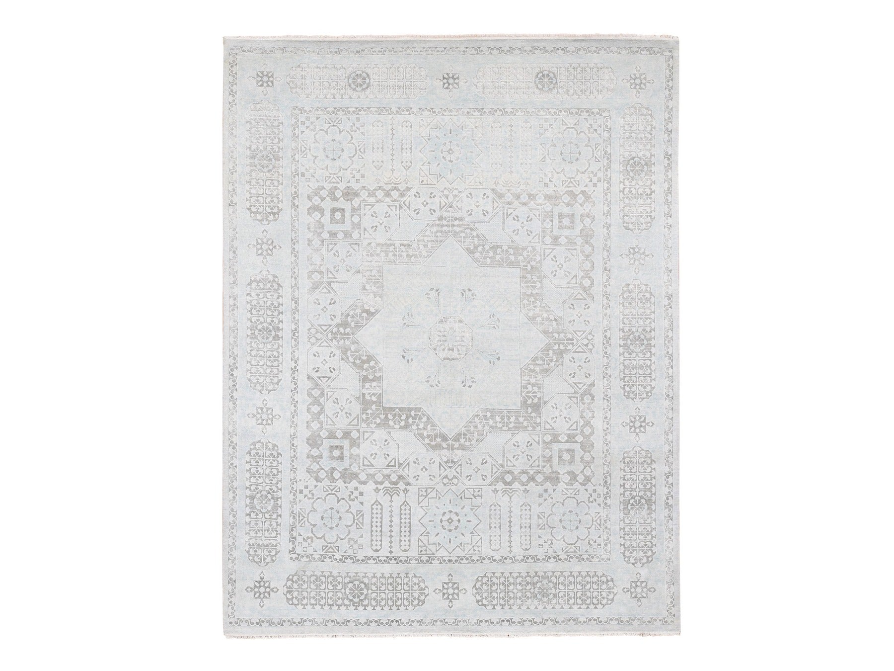 8'1" x 10'5" New Hand Knotted Blue Wool & Silk Rectangle Oriental Rug - MOA10280391