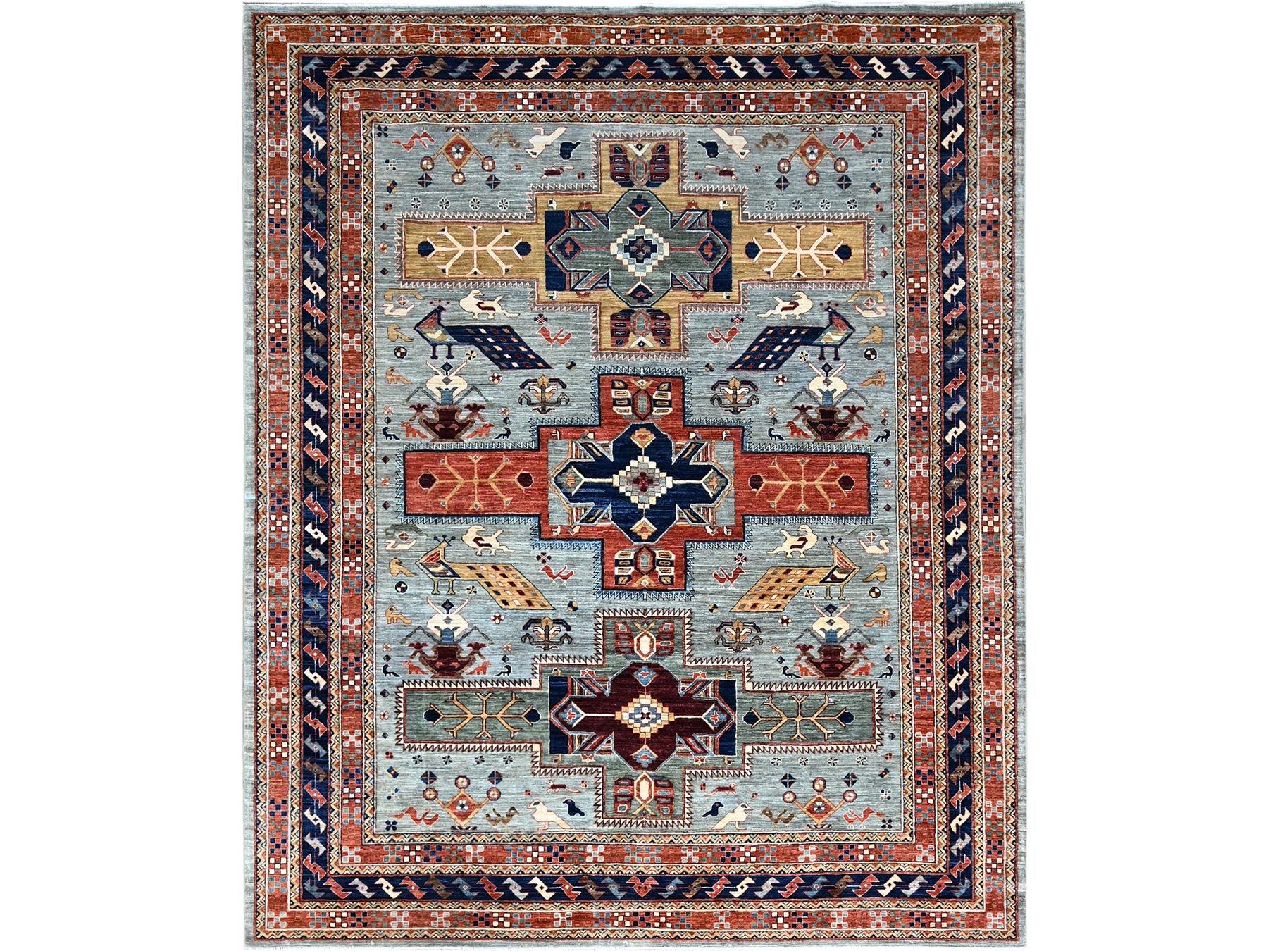 8'1" x 9'11" New Hand Knotted Grey Wool Rectangle Oriental Rug - MOA102157