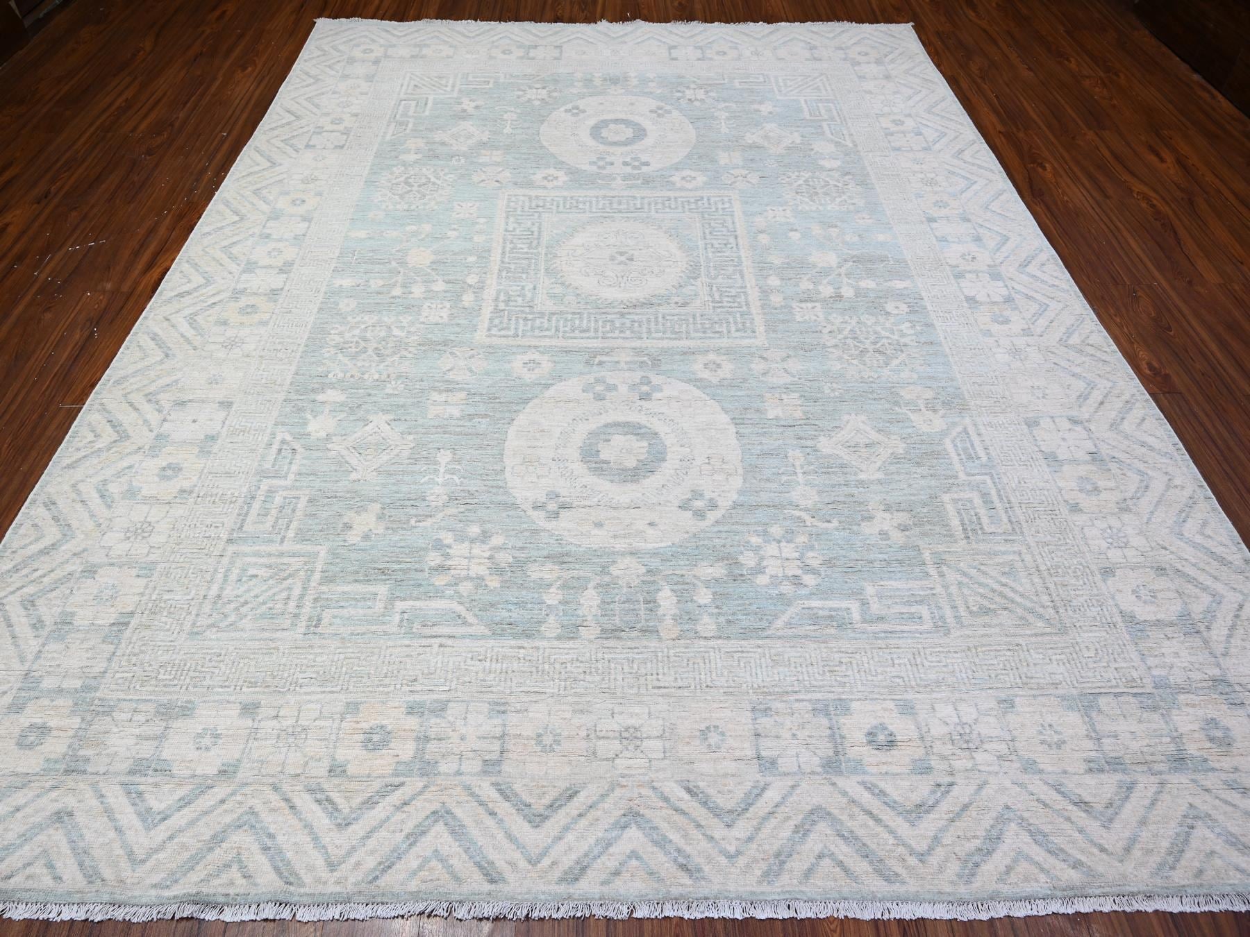 8'10" x 11'3" New Hand Knotted Blue Wool Rectangle Oriental Rug - MOA10288561