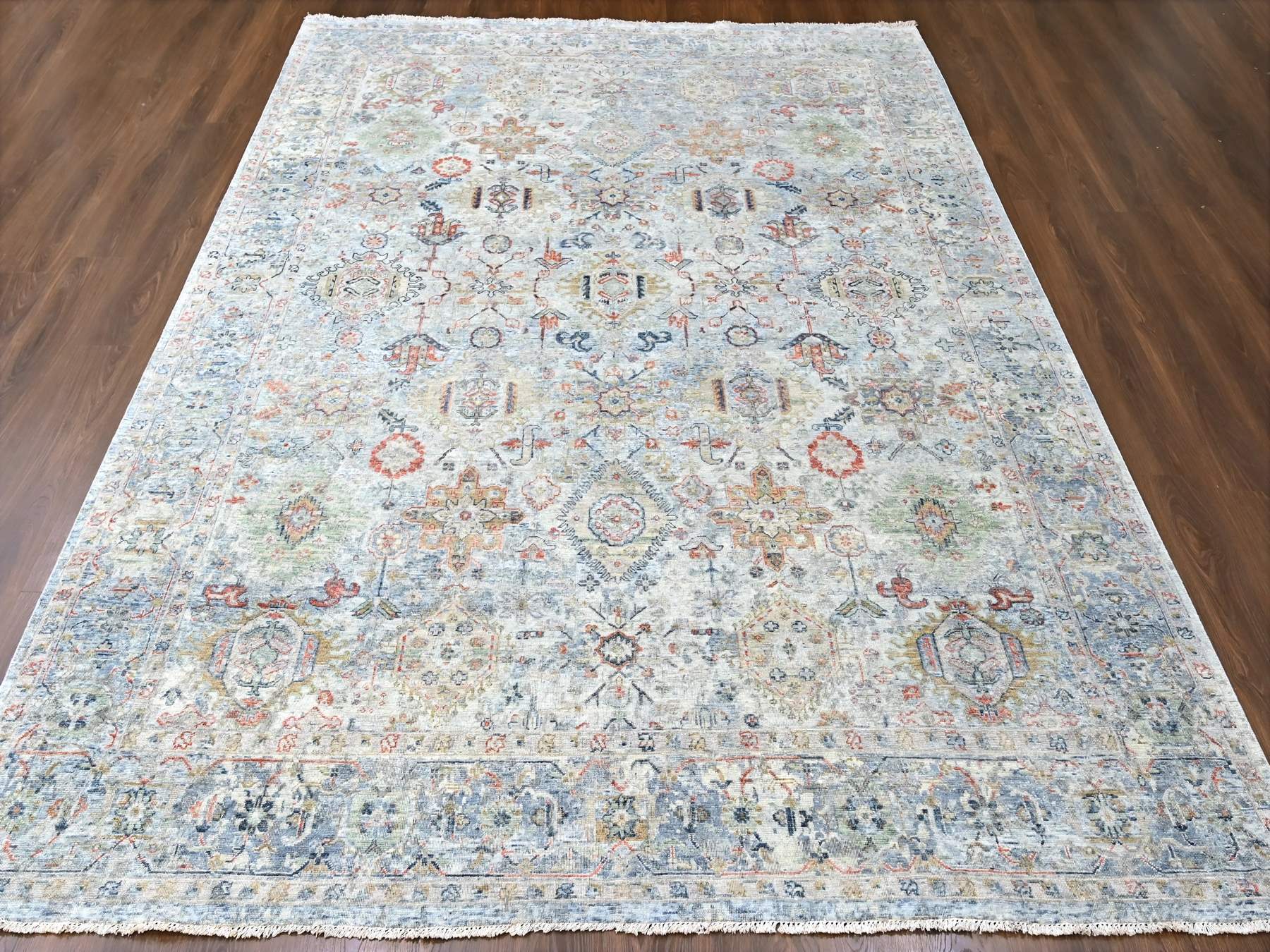 8'10" x 11'9" New Hand Knotted Grey Wool Rectangle Oriental Rug - MOA10210165