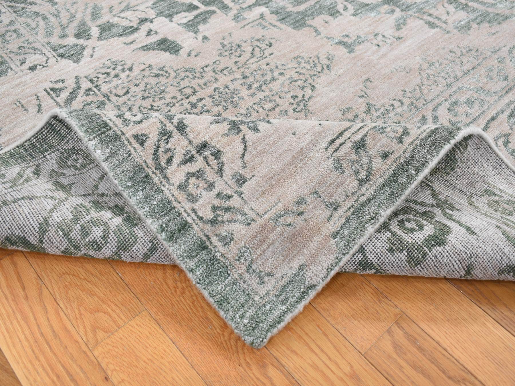8'10" x 12'0" New Hand Knotted Green Wool & Silk Rectangle Oriental Rug - MOA10280798