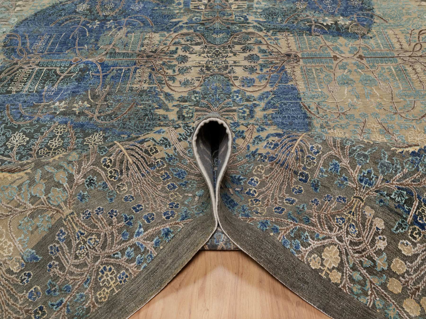 8'10" x 12'1" New Hand Knotted Brown Wool & Silk Rectangle Oriental Rug - MOA10291165