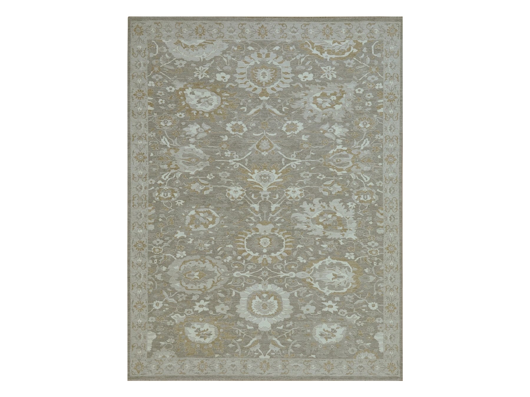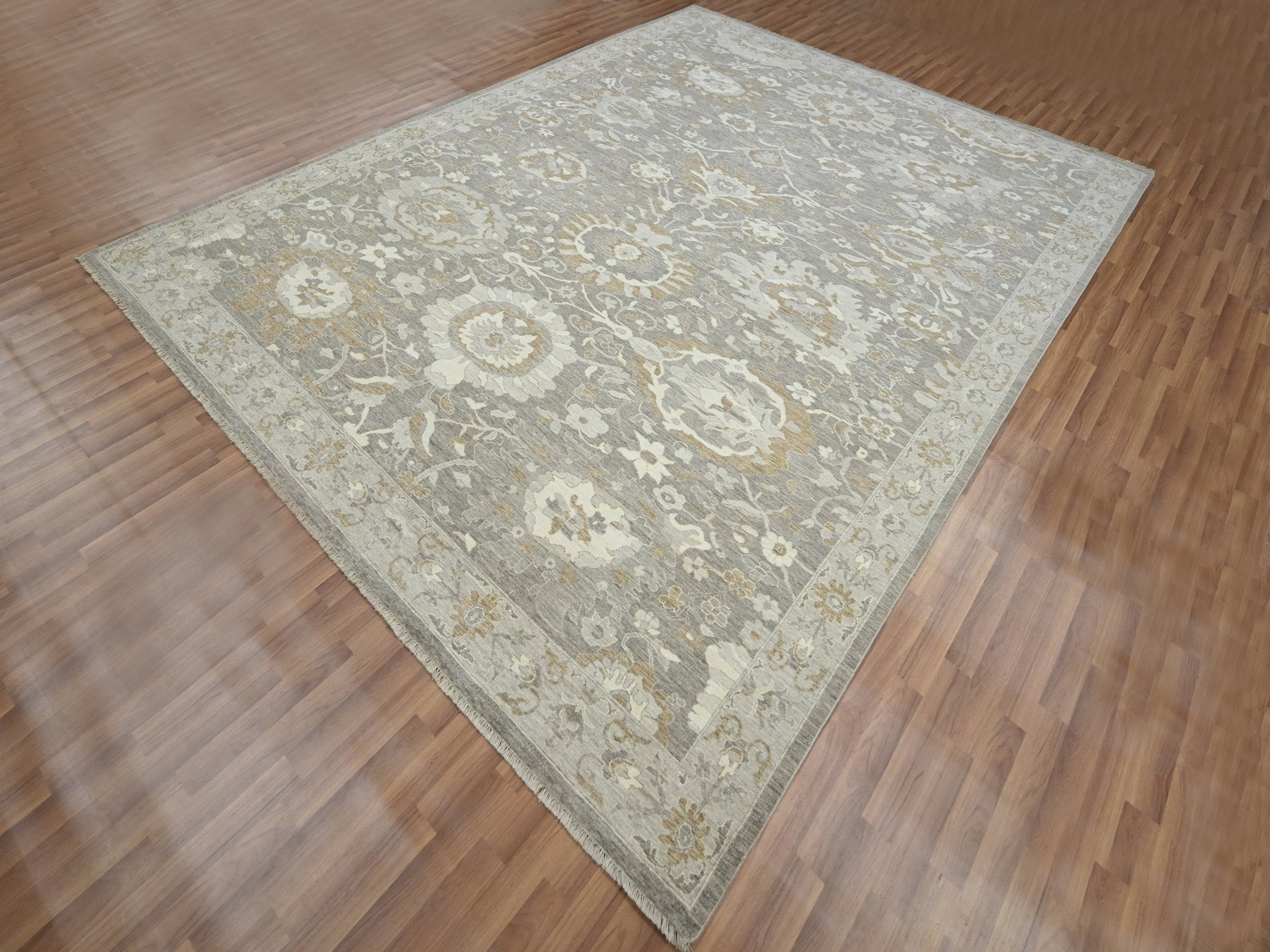 8'11" x 11'10" New Hand Knotted Grey Wool Rectangle Oriental Rug - MOA10276164