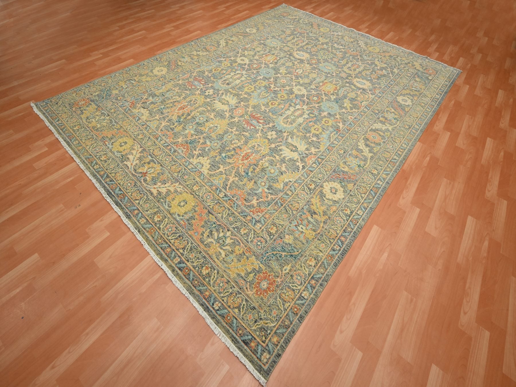 8'11" x 12'1" New Hand Knotted Grey Wool Rectangle Oriental Rug - MOA10275636