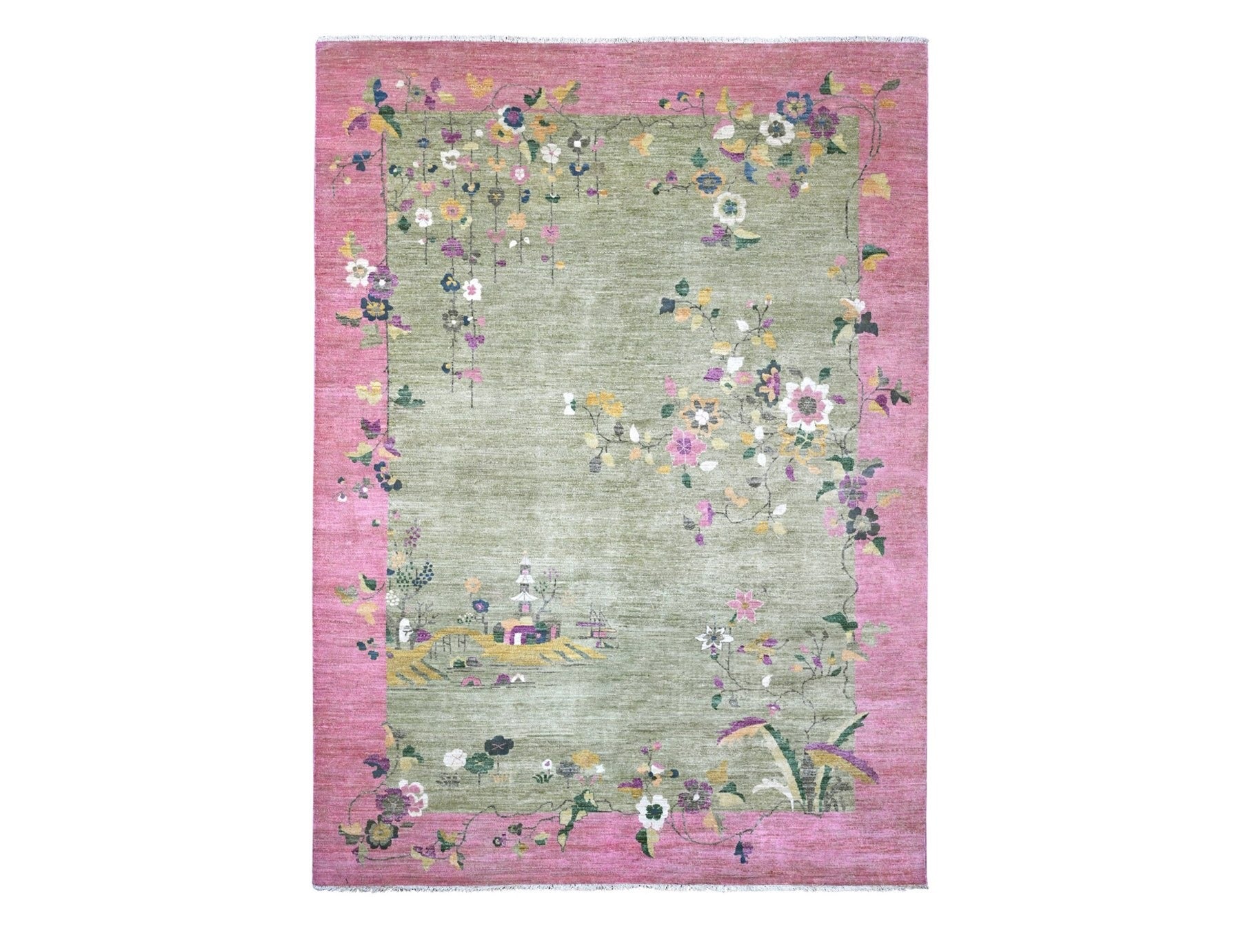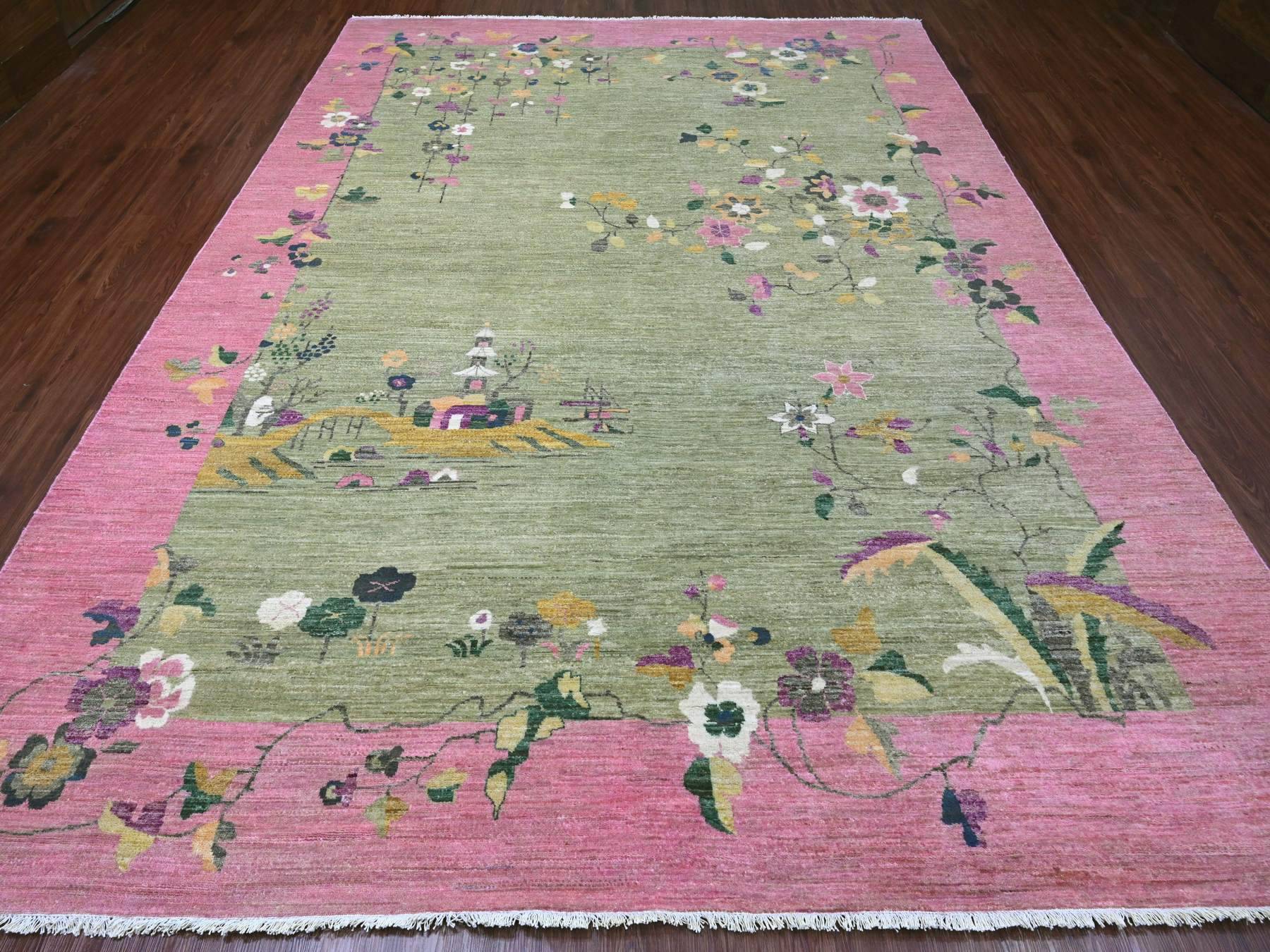 8'11" x 12'3" New Hand Knotted Green Wool Rectangle Oriental Rug - MOA10220545