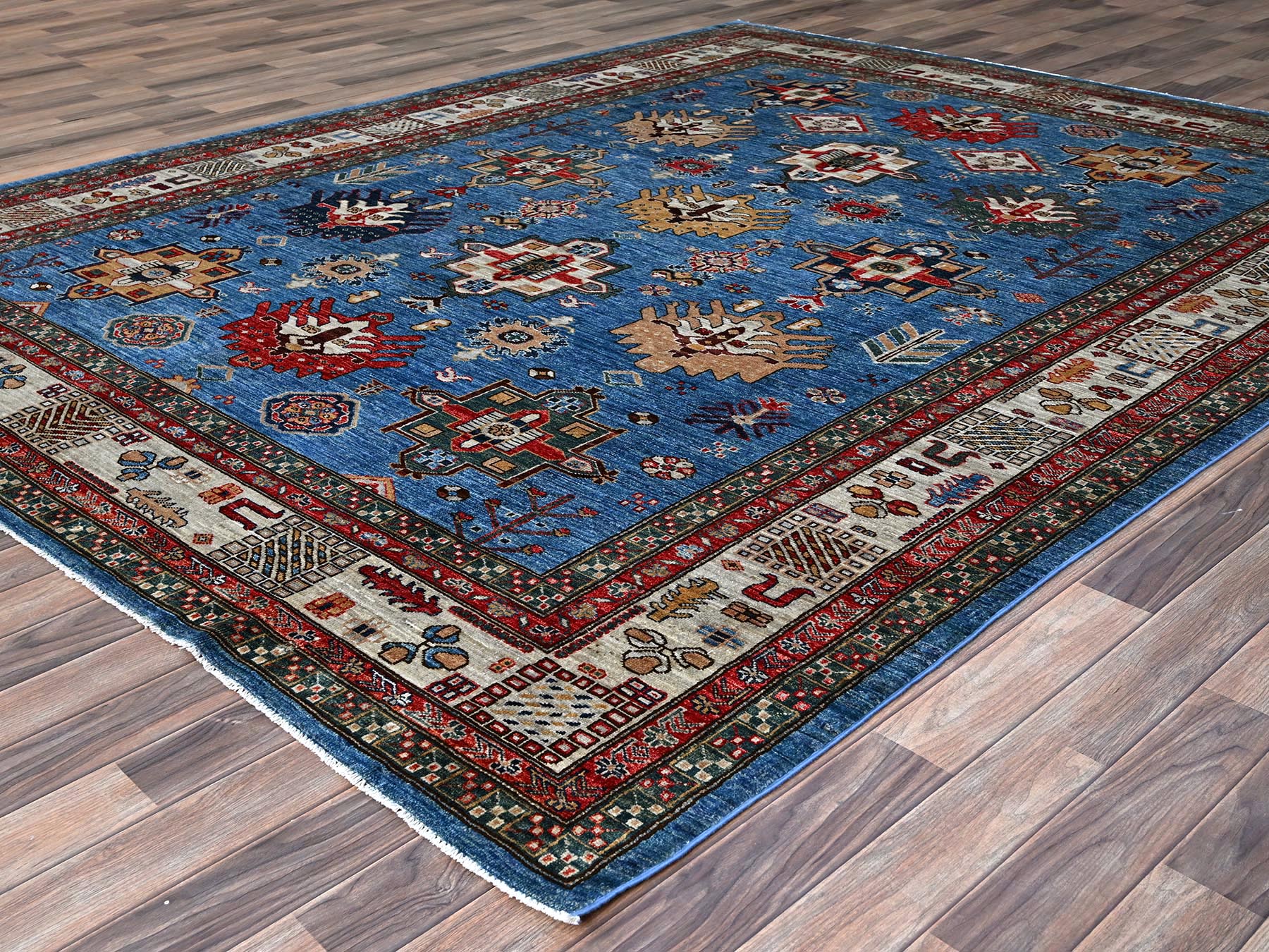 8'2" x 10'3" New Hand Knotted Blue Wool Rectangle Oriental Rug - MOA10286545