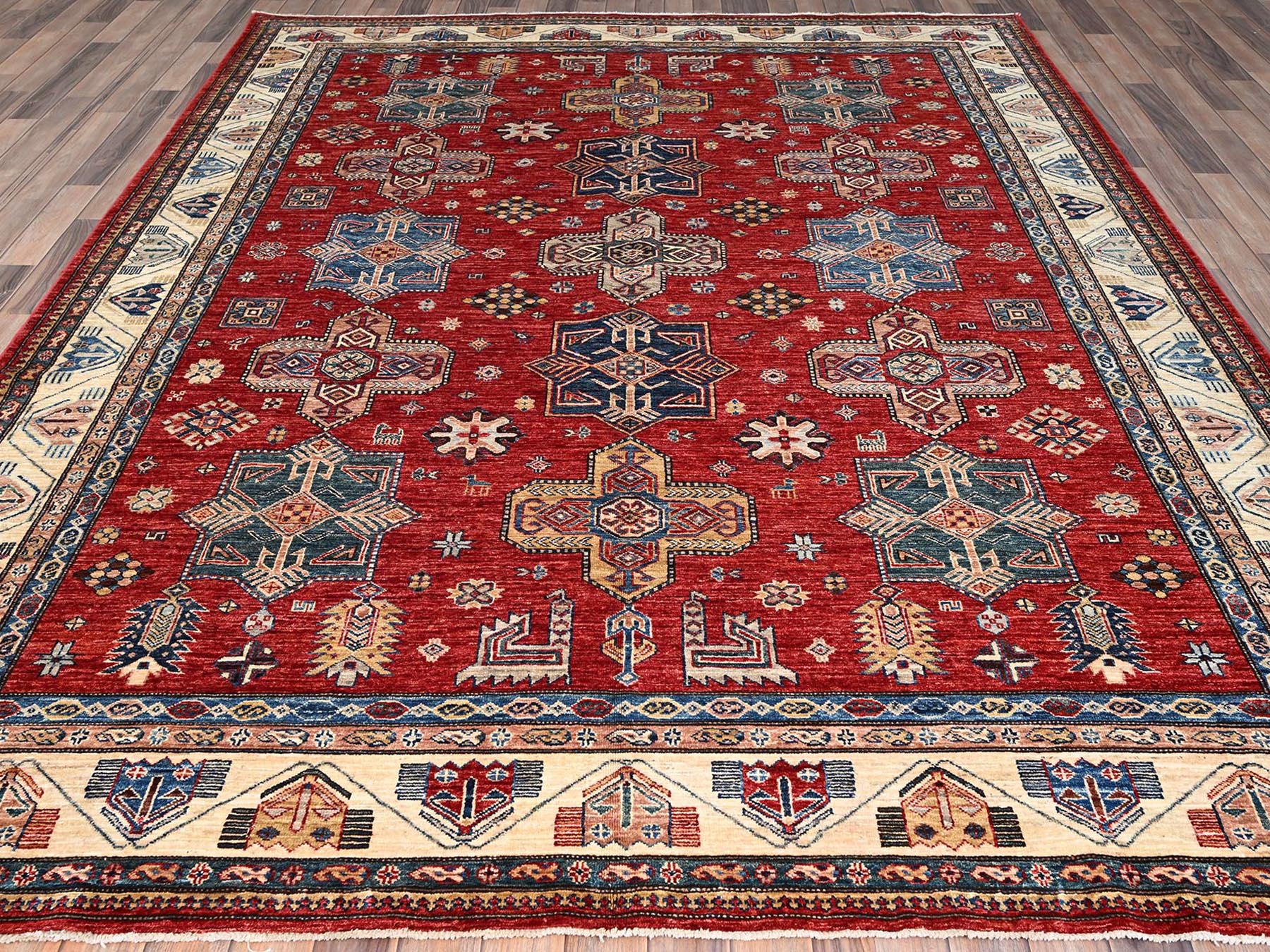 8'2" x 10'4" New Hand Knotted Red Wool Rectangle Oriental Rug - MOA10286269
