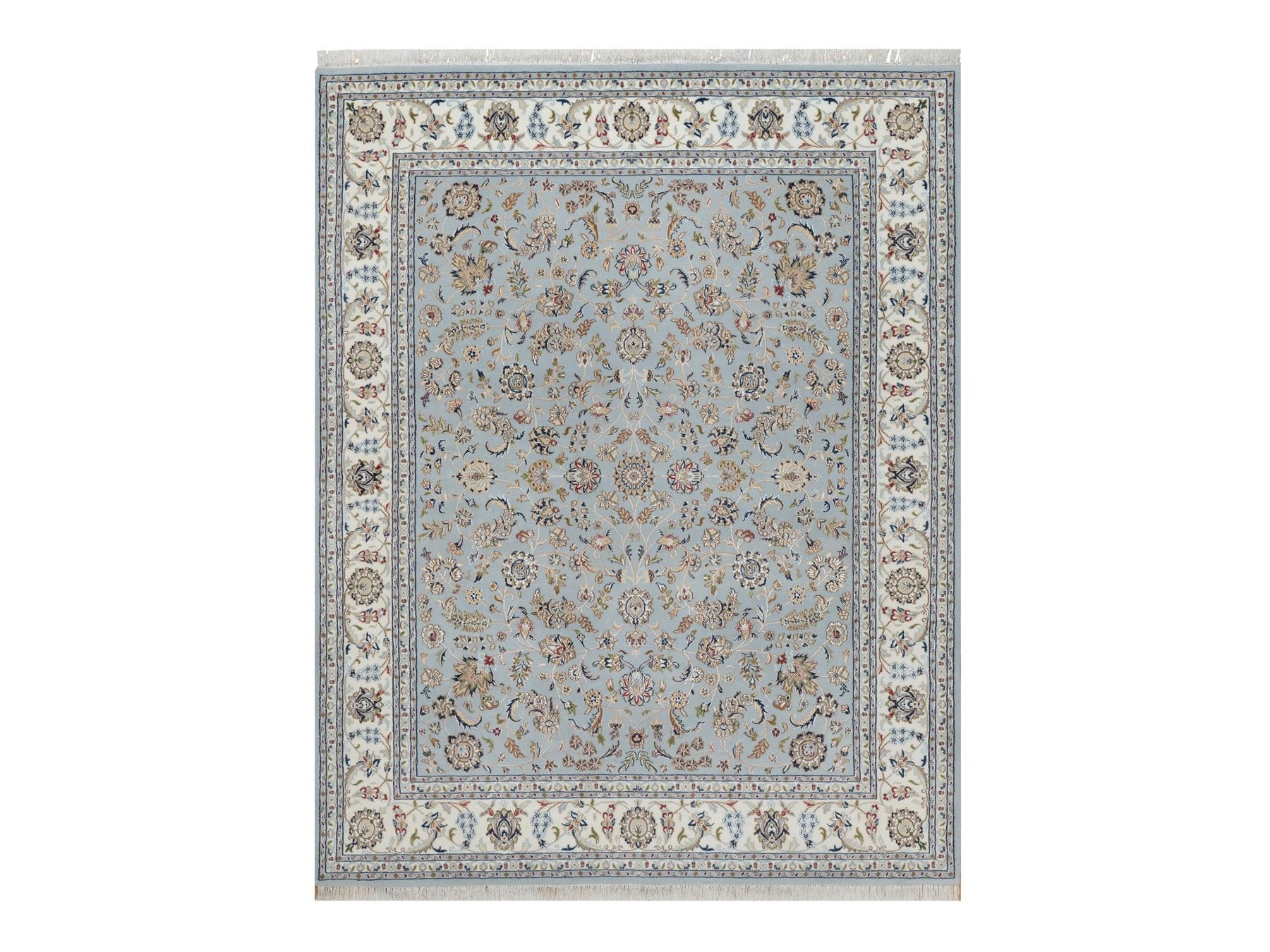8'2" x 10'5" New Hand Knotted Grey Wool & Silk Rectangle Oriental Rug - MOA10291596