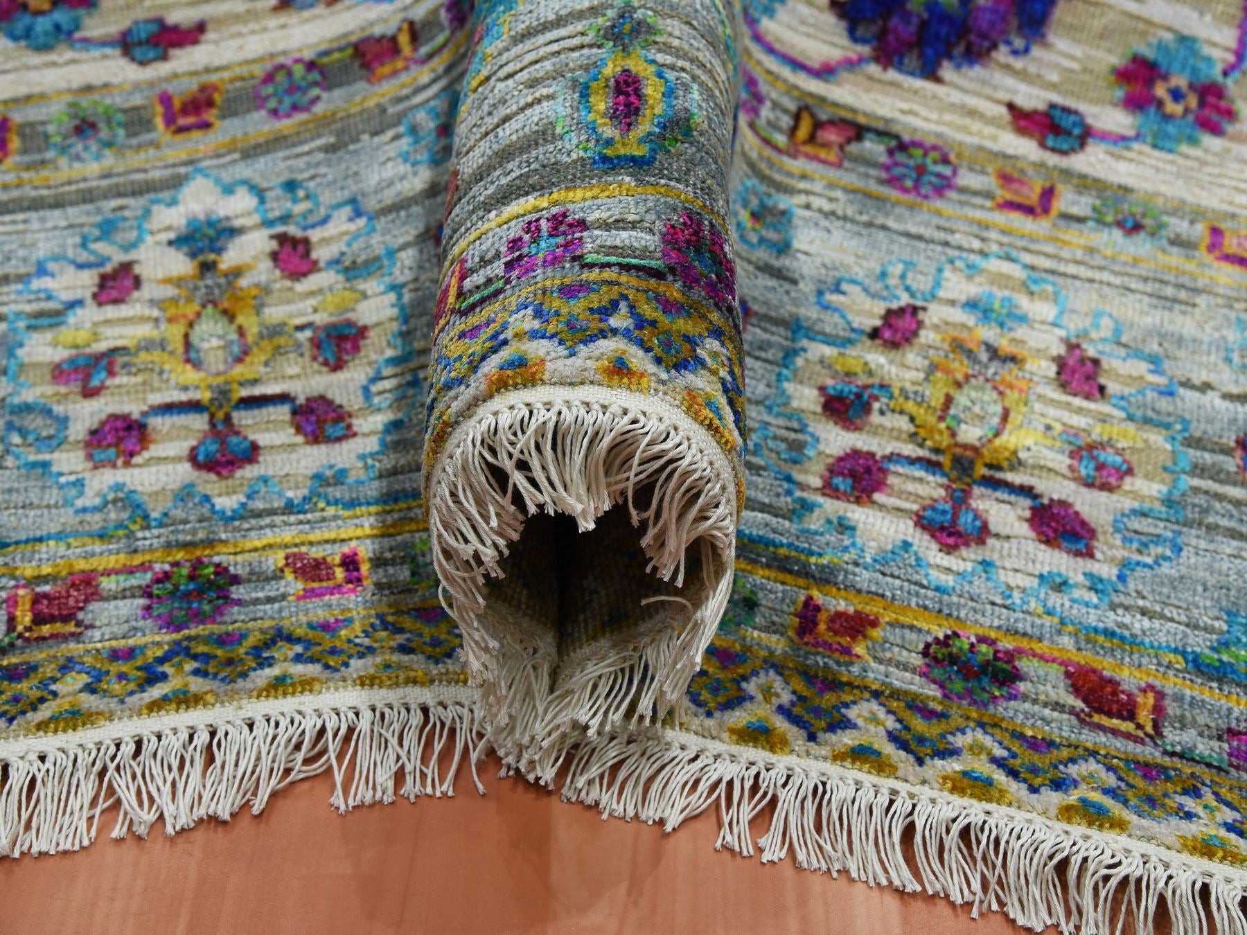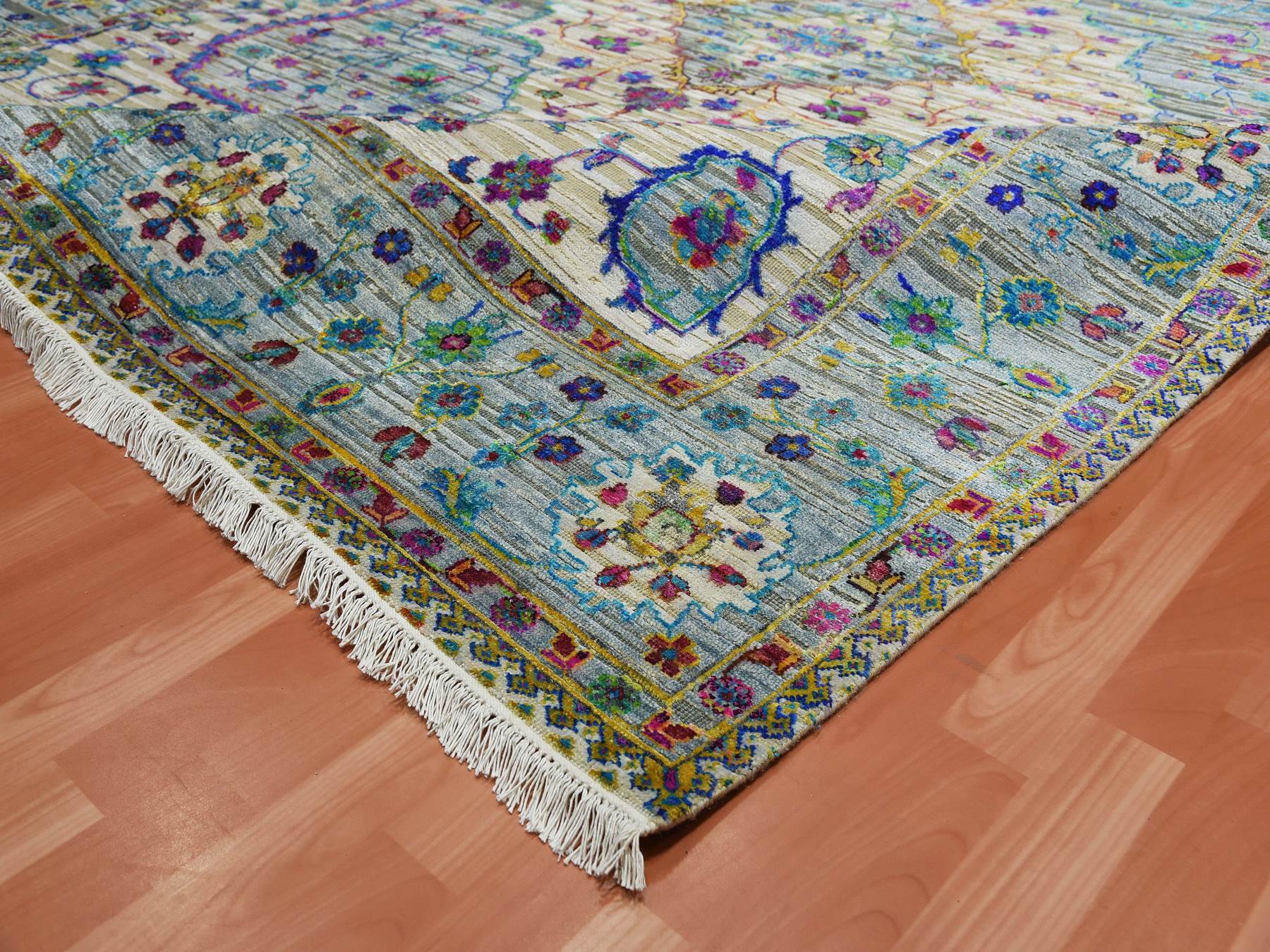8'8" x 12'0" New Hand Knotted Grey Silk Rectangle Oriental Rug - MOA10275233
