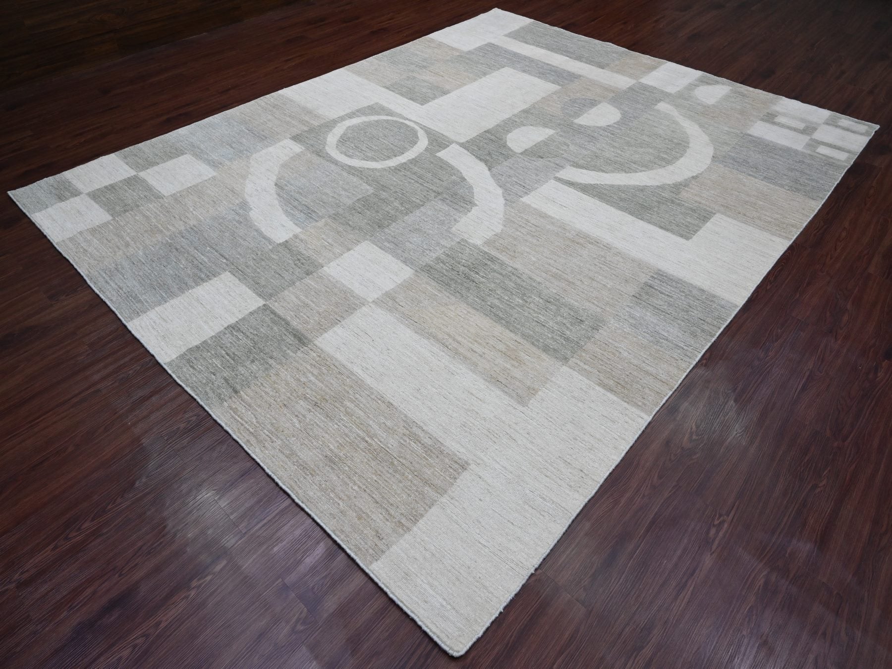 8'9" x 11'6" New Hand Knotted Grey Wool Rectangle Oriental Rug - MOA10220540