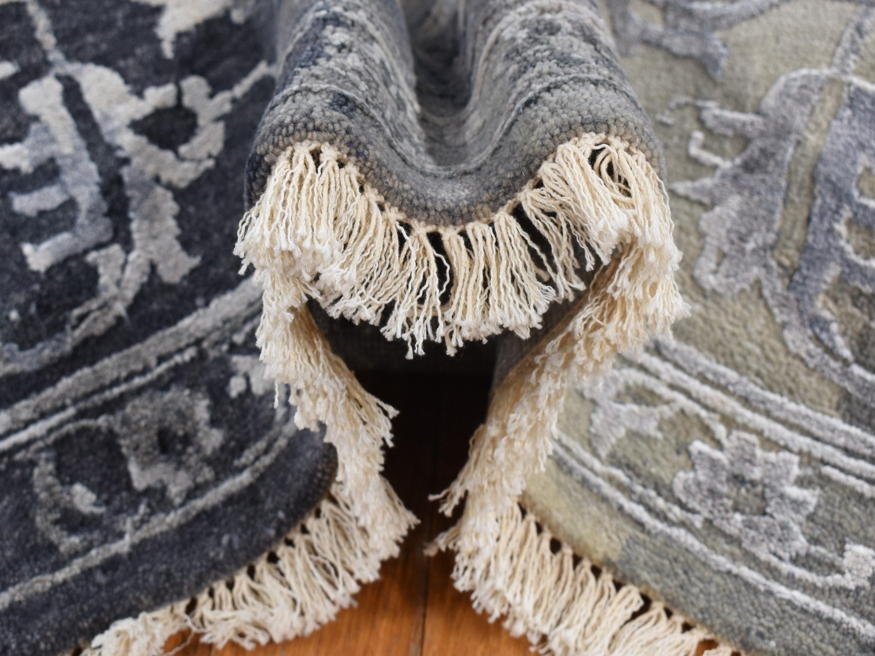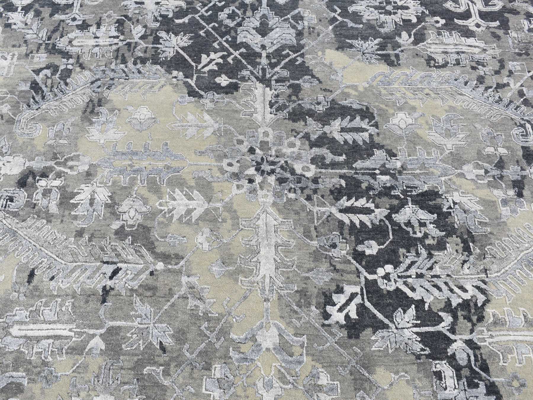 9'0" x 11'10" New Hand Knotted Grey Wool & Silk Rectangle Oriental Rug - MOA10287068