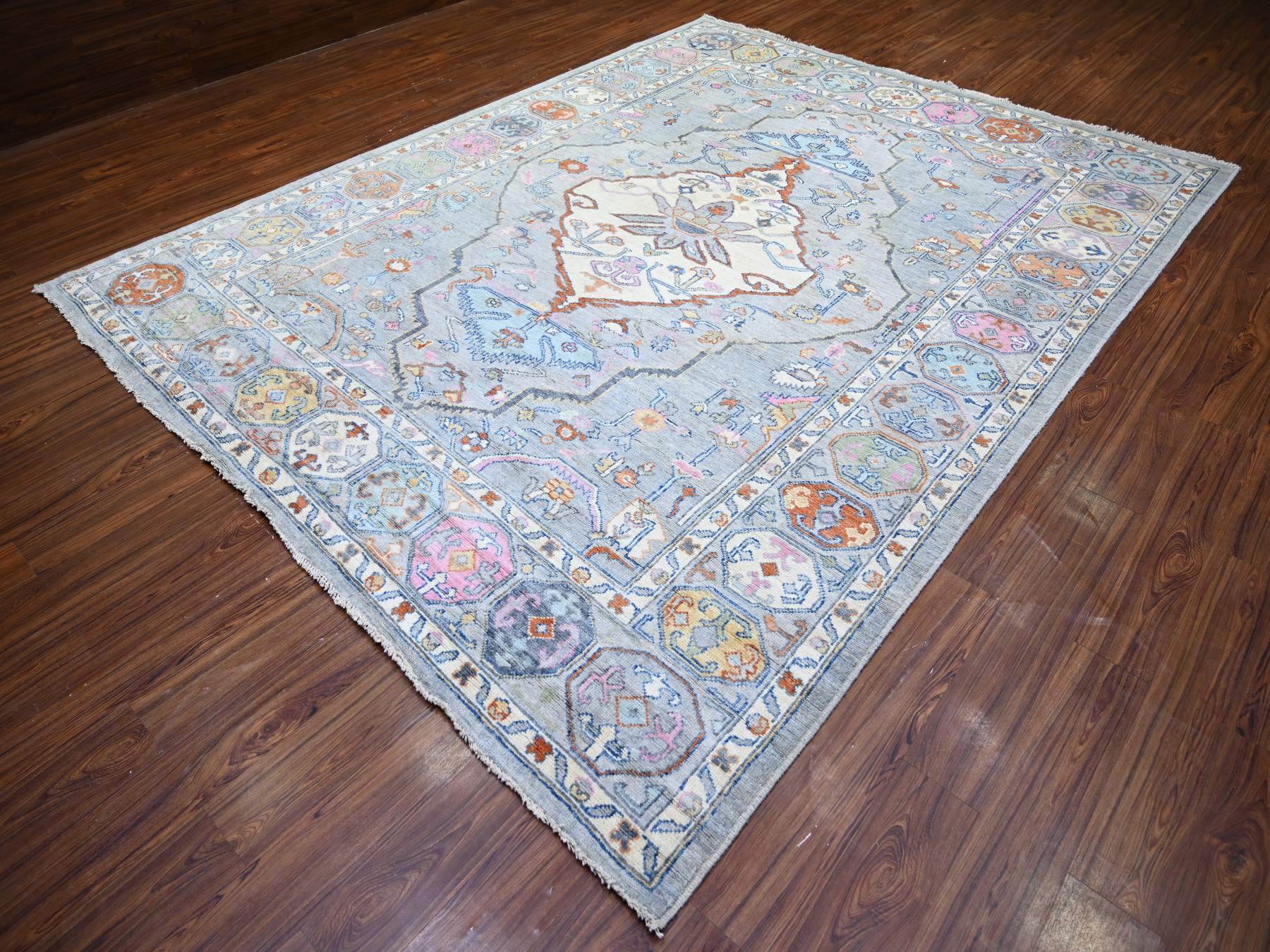 9'0" x 11'6" New Hand Knotted Grey Wool Rectangle Oriental Rug - MOA10274229