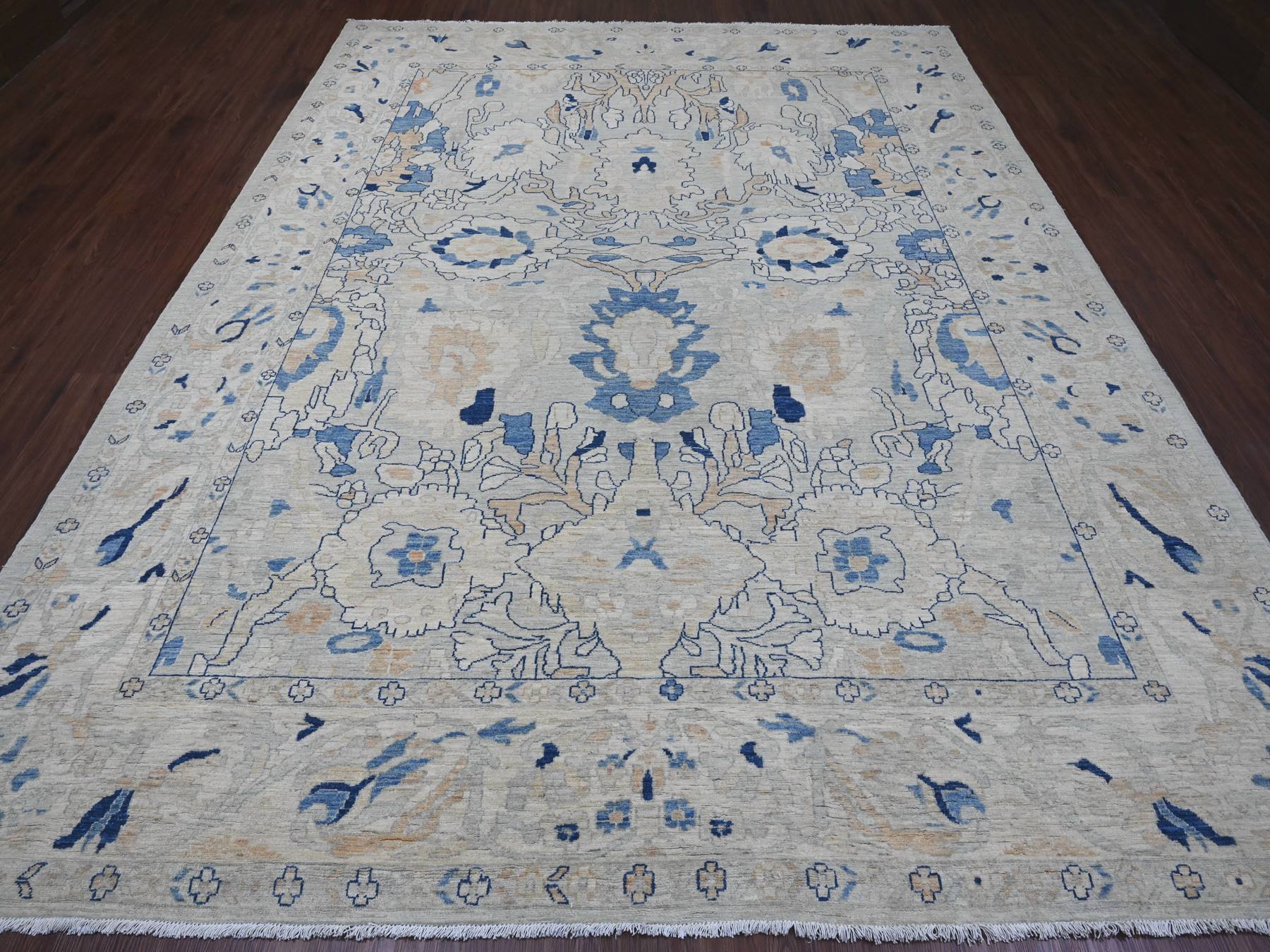 9'0" x 11'7" New Hand Knotted Grey Wool Rectangle Oriental Rug - MOA10220089