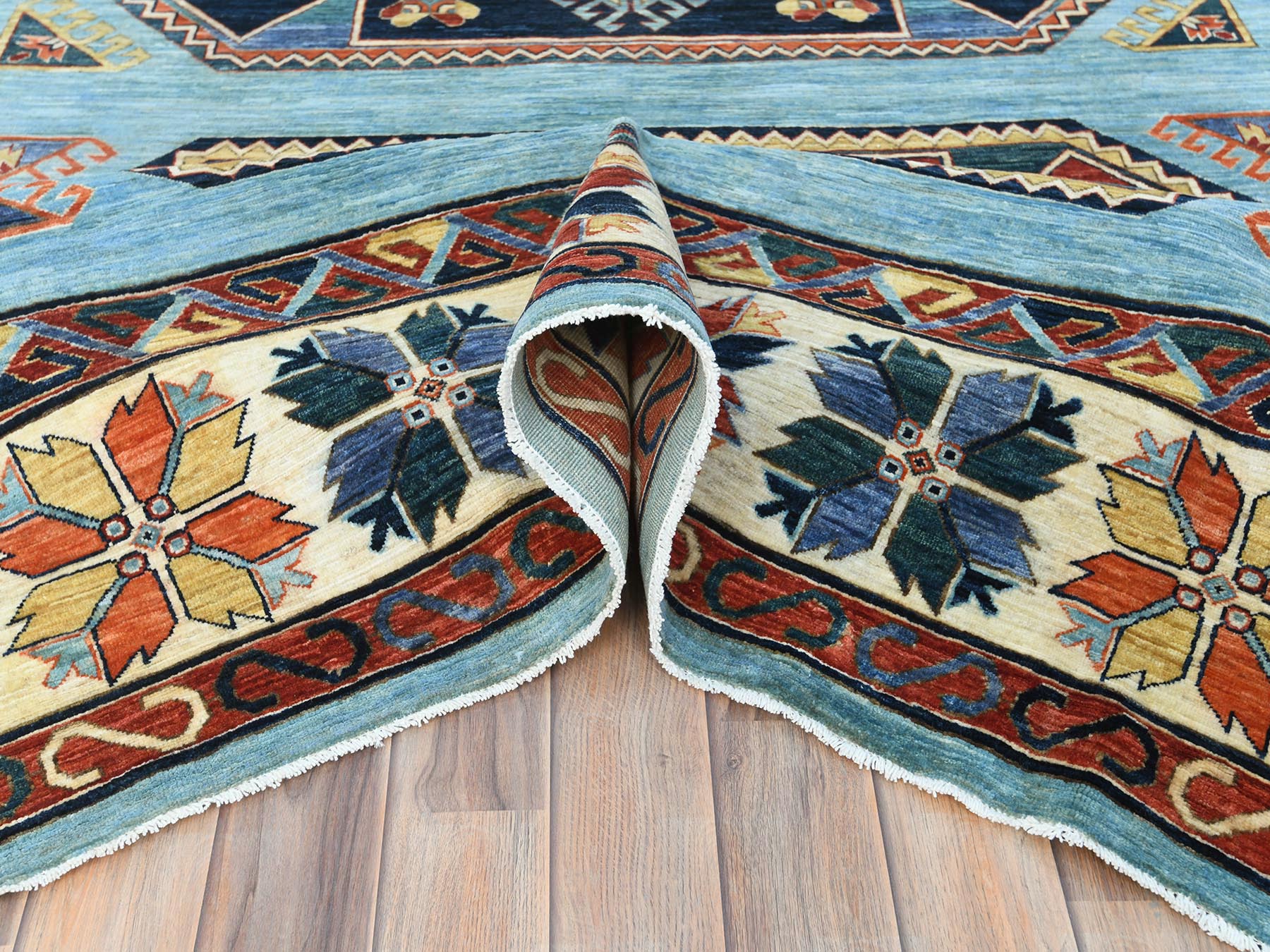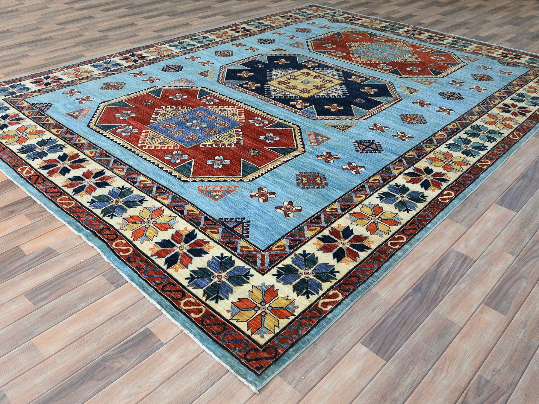 9'0" x 11'8" New Hand Knotted Blue Wool Rectangle Oriental Rug - MOA10285034