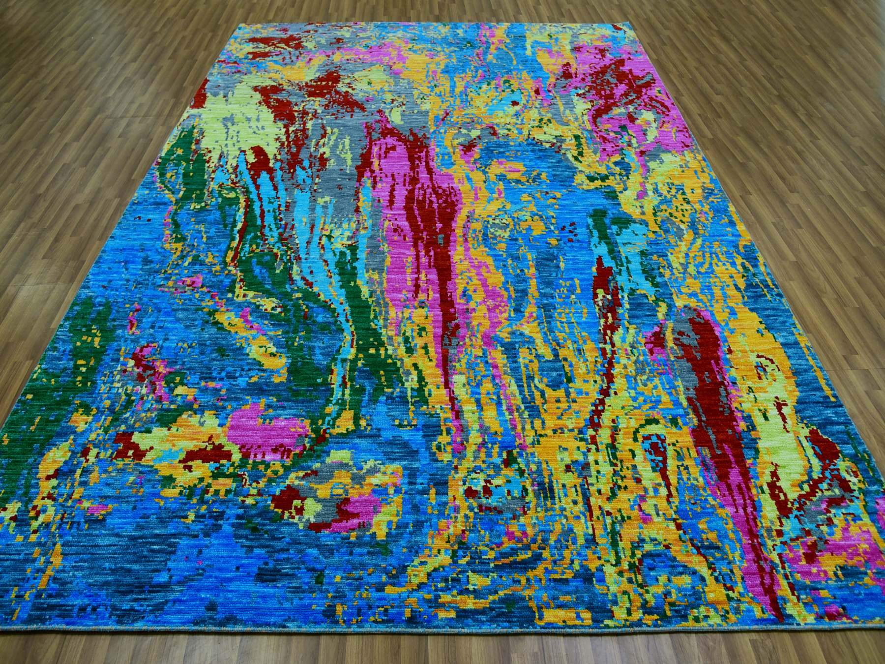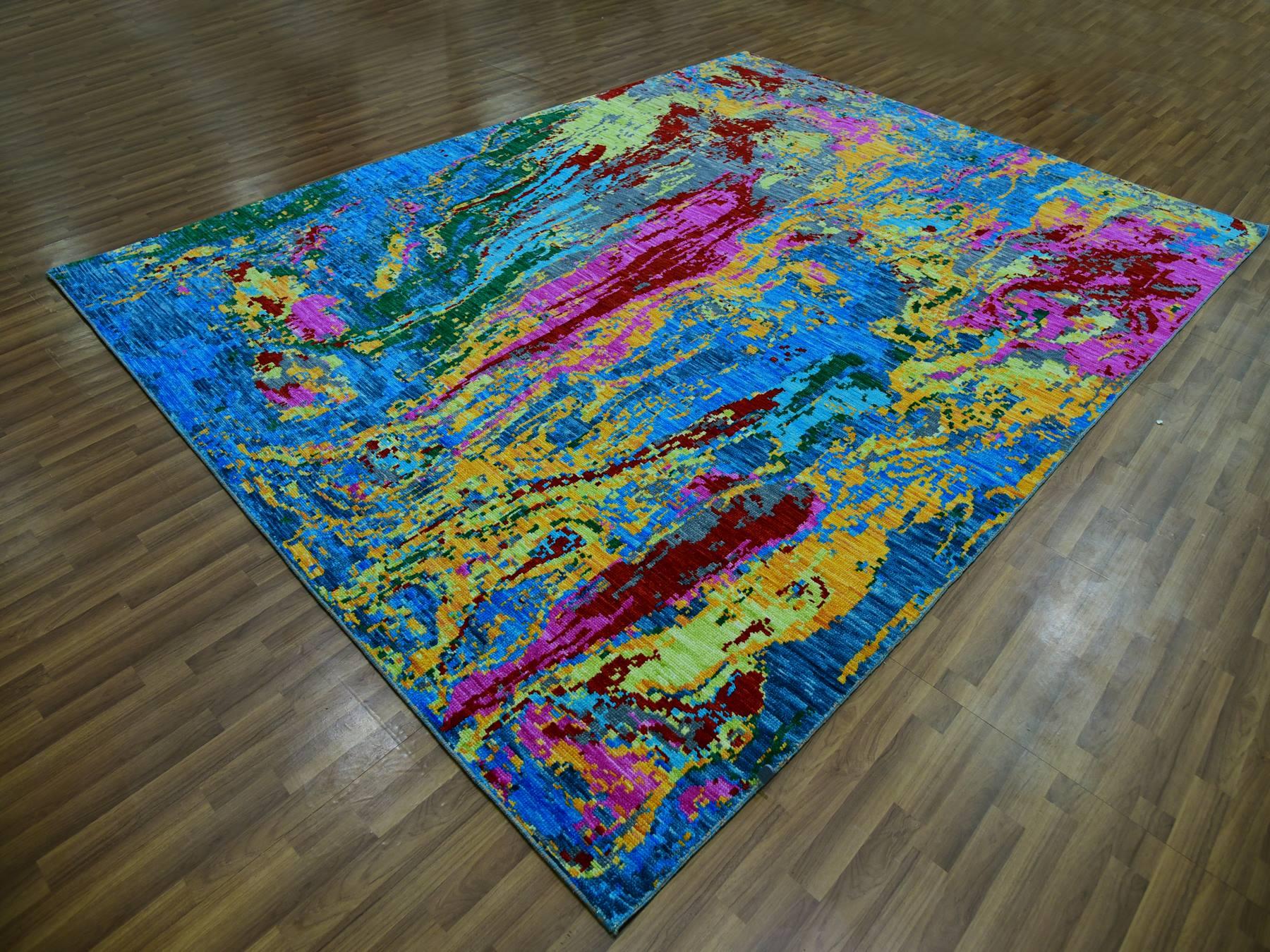 9'0" x 11'9" New Hand Knotted Blue Wool Rectangle Oriental Rug - MOA10279937