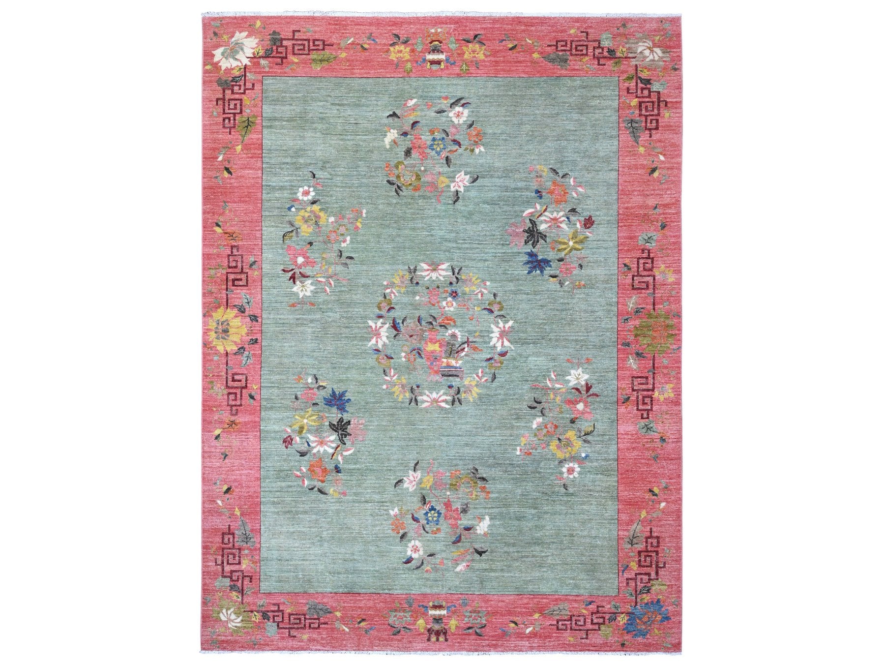 9'0" x 11'9" New Hand Knotted Green Wool Rectangle Oriental Rug - MOA10289735