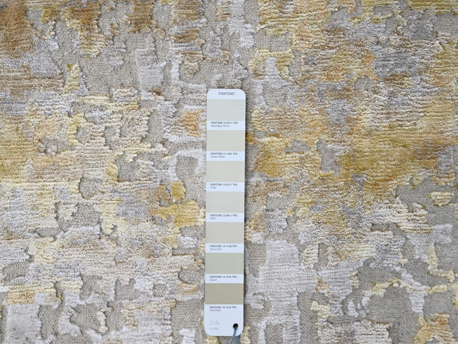 9'0" x 12'0" New Hand Knotted Beige Wool & Silk Rectangle Oriental Rug - MOA10210195